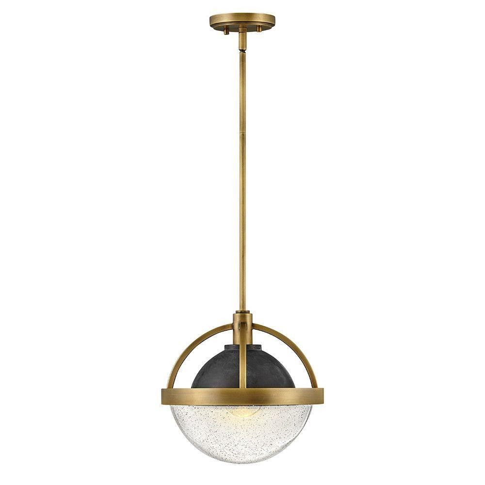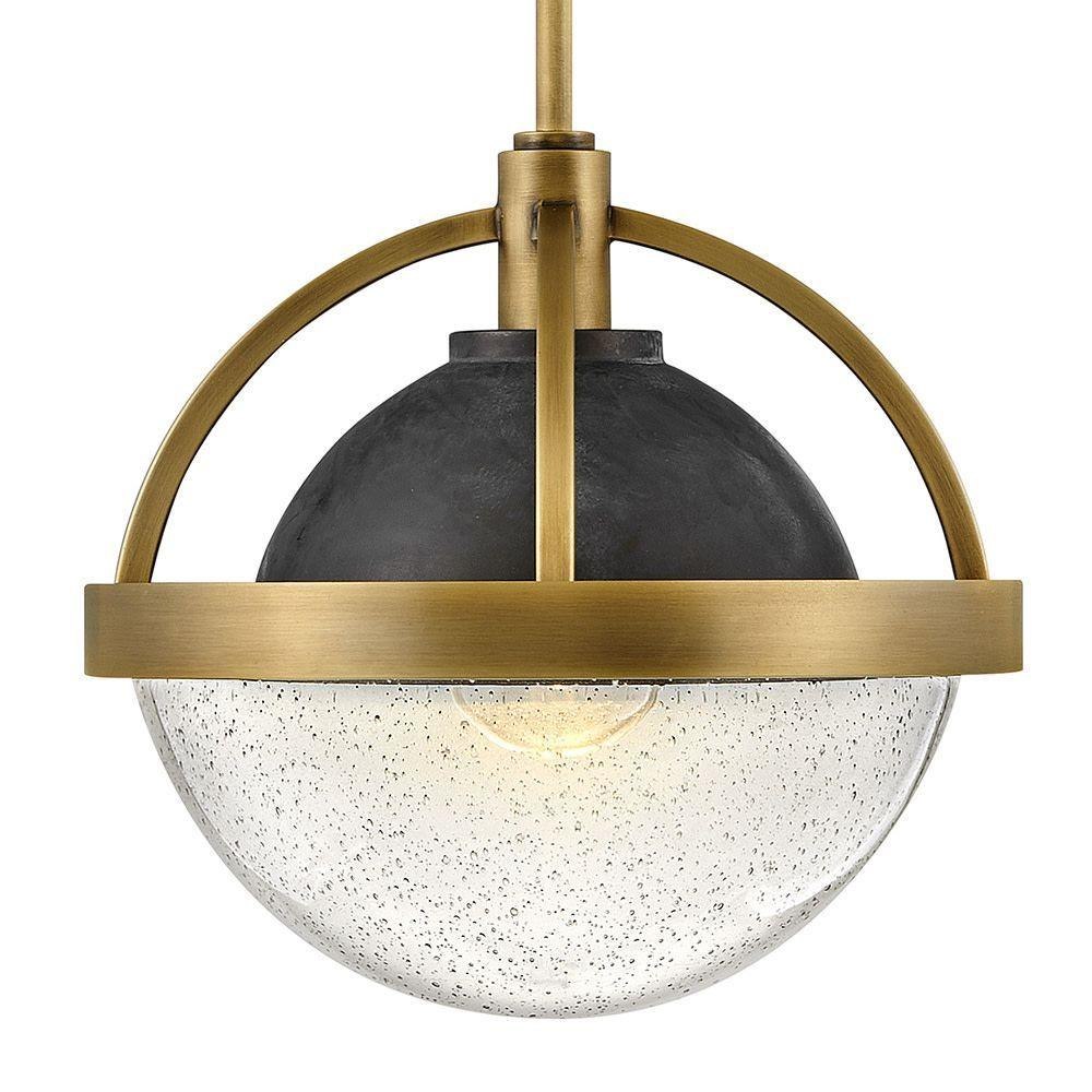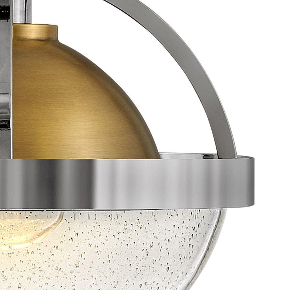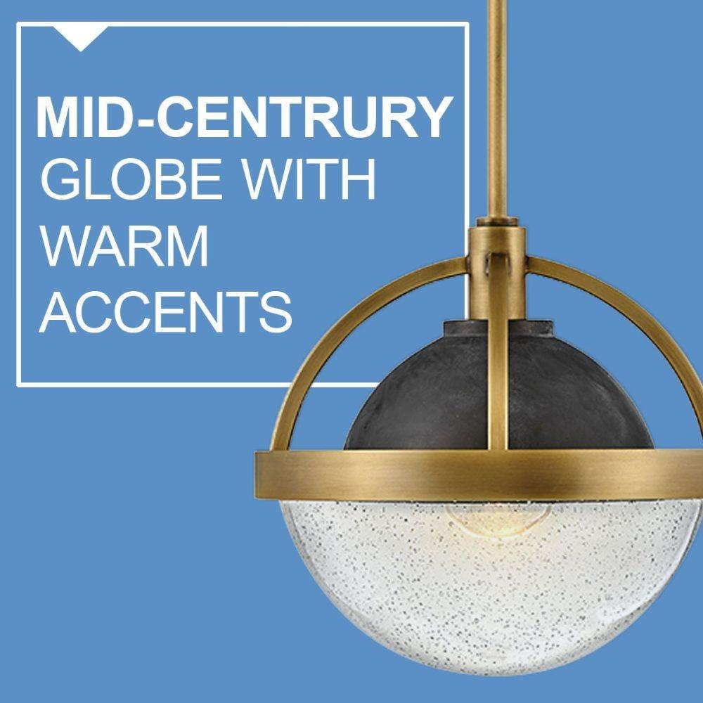 Watson merges mid-century and modern to provide a breath of fresh air to any interior. Its soft, clear seedy glass globe is held within a two-tone frame in Heritage Brass with Slate Bronze, or Polished Nickel with Heritage Brass, providing seamless transition for use throughout the home. Globe style bulbs recommended.