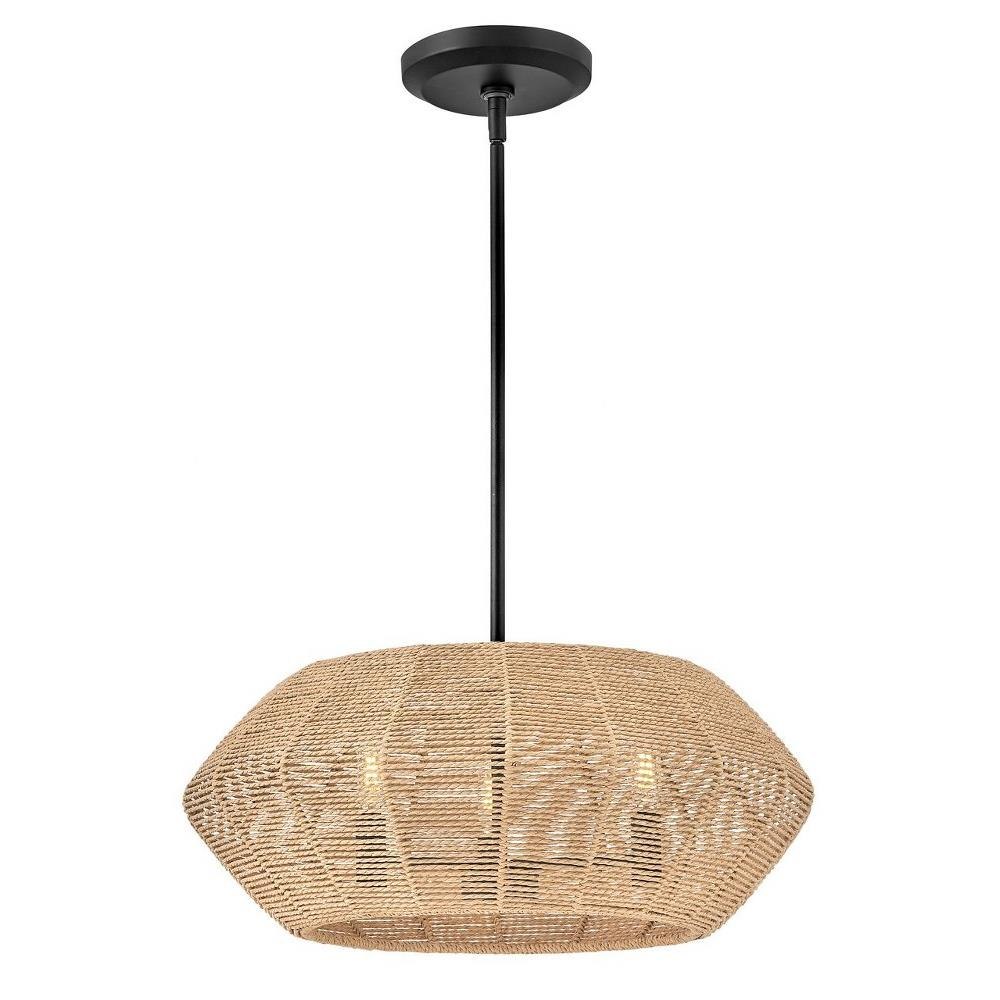 Luca's coastal vibe is permeated with a slightly exotic edge. The bold pendant showcases a robust, woven drum shade, and a full finished cluster for plenty of functional light offered in a variety of finish options. Luca is part of the Lisa McDennon Collection.Suitable for use in dry (indoor) locations as defined by NEC and CEC. Meets United States UL Underwriters Laboratories & CSA Canadian Standards Association Product Safety Standards / This stem hung fixture may be hung on a sloped ceiling / Striking black finish enhances design / Eclectic style that mixes unconventional elements; unique and sophisticated designs that feel modern and vintage at the same time. / Convertible fixture mounts directly to canopy or with a fixture-specific stem or chain that is 6” or less / This fixture includes multiple down stems in various lengths to customize the installation height, including one 4" stem, one 6" stem and one 12" stem. / The Lisa McDennon Collection offers a striking mix of edgy, sculptural silhouettes that incorporate modern, organic elements and luxe materials, brought to life by her innovative and original point of view.