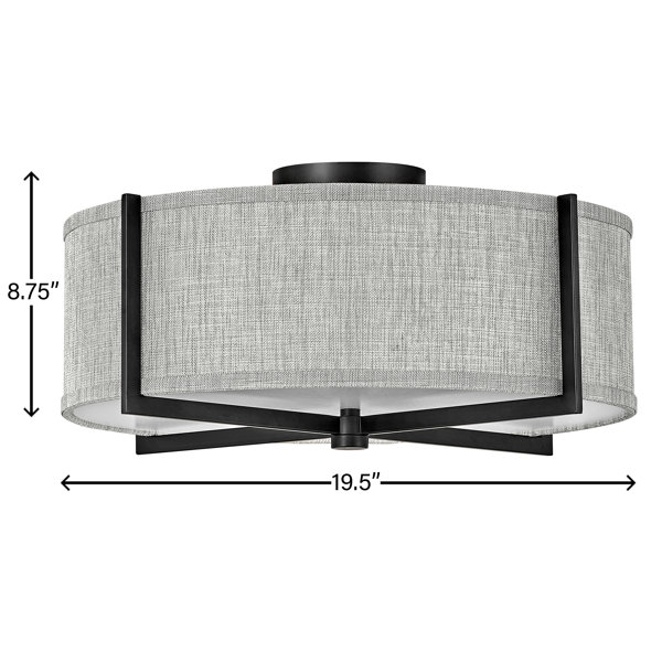 This Medium Semi-Flush Mount fixture has a classic crossed-stem design with a linen shade that filters the light through a hospitality diffuser. Creativity meets practicality with sturdy details all in a rich Heritage Brass or a classic Black finish. The shade comes in an Off White Linen or Heather Gray Linen and pairs perfectly with (3) 14w Medium LED bulbs (not included).