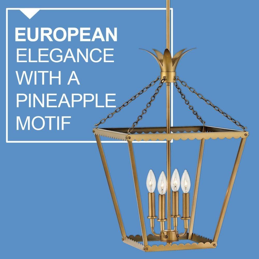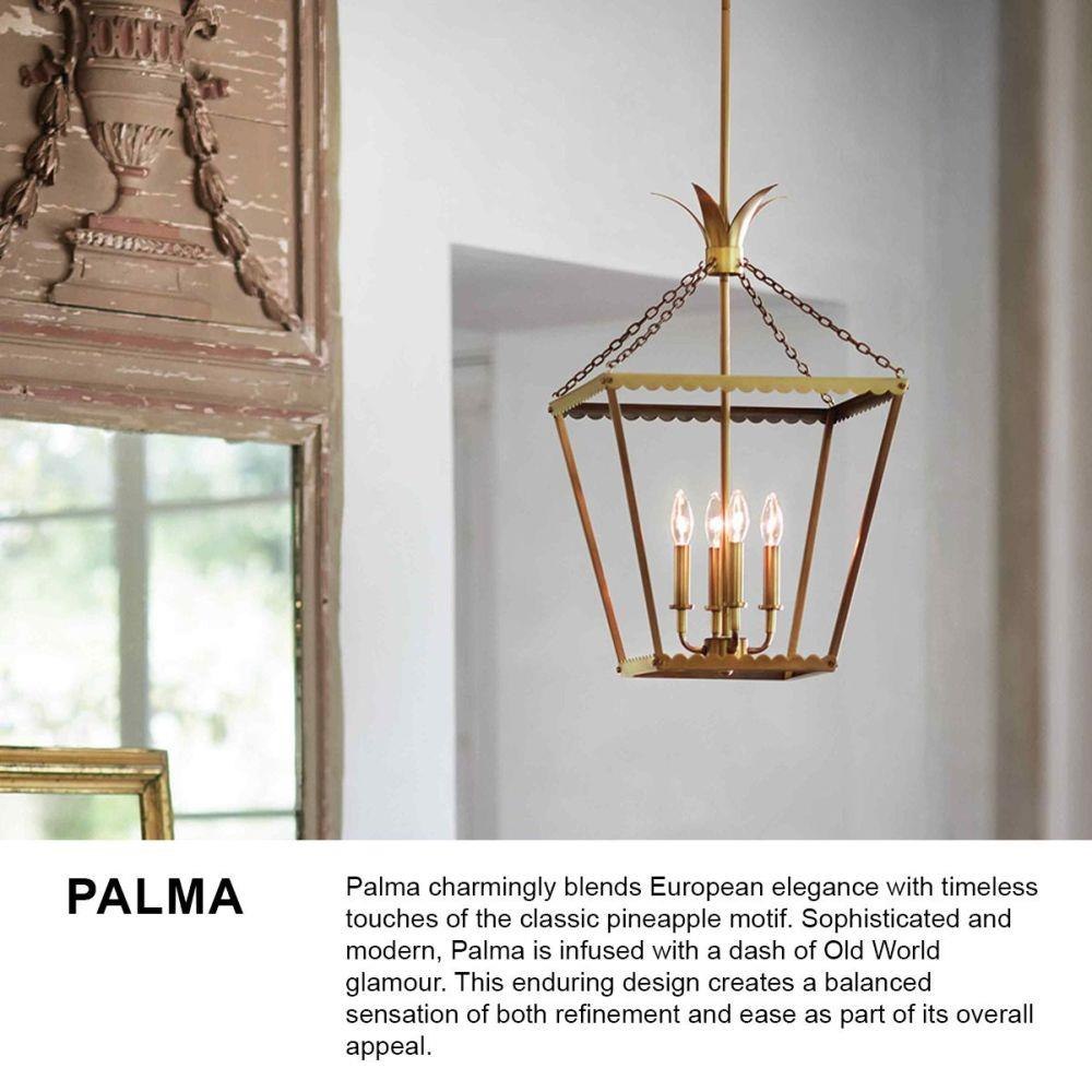 Palma charmingly blends European elegance with timeless touches of the classic pineapple motif. Sophisticated and modern, Palma is infused with a dash of Old World glamour. This enduring design creates a balanced sensation of both refinement and ease as part of its overall appeal.Suitable for use in dry (indoor) locations as defined by NEC and CEC. Meets United States UL Underwriters Laboratories & CSA Canadian Standards Association Product Safety Standards / This fixture includes multiple down stems in various lengths to customize the installation height of the fixture, including one 6" stem and two 12" stems. / Classic gleaming light brass finish / Merging the best of traditional and modern elements, with a sophisticated and streamlined silhouette perfect for any space / Shown with T-style bulbs (not included) / Ideal for vintage filament bulbs (not included)