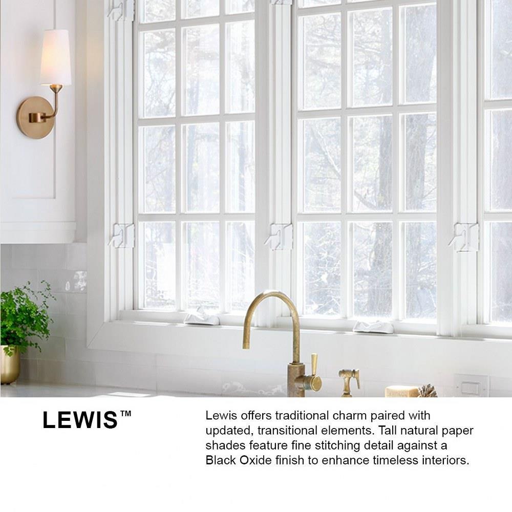 Lewis offers traditional charm paired with updated, transitional elements. Tall natural paper shades feature fine stitching detail against a Heritage Brass or Black Oxide finish to enhance timeless interiors.Suitable for use in dry (indoor) locations as defined by NEC and CEC. Meets United States UL Underwriters Laboratories & CSA Canadian Standards Association Product Safety Standards / Classic gleaming light brass finish / Classic, elegant lines and timeless details enhance a traditional space