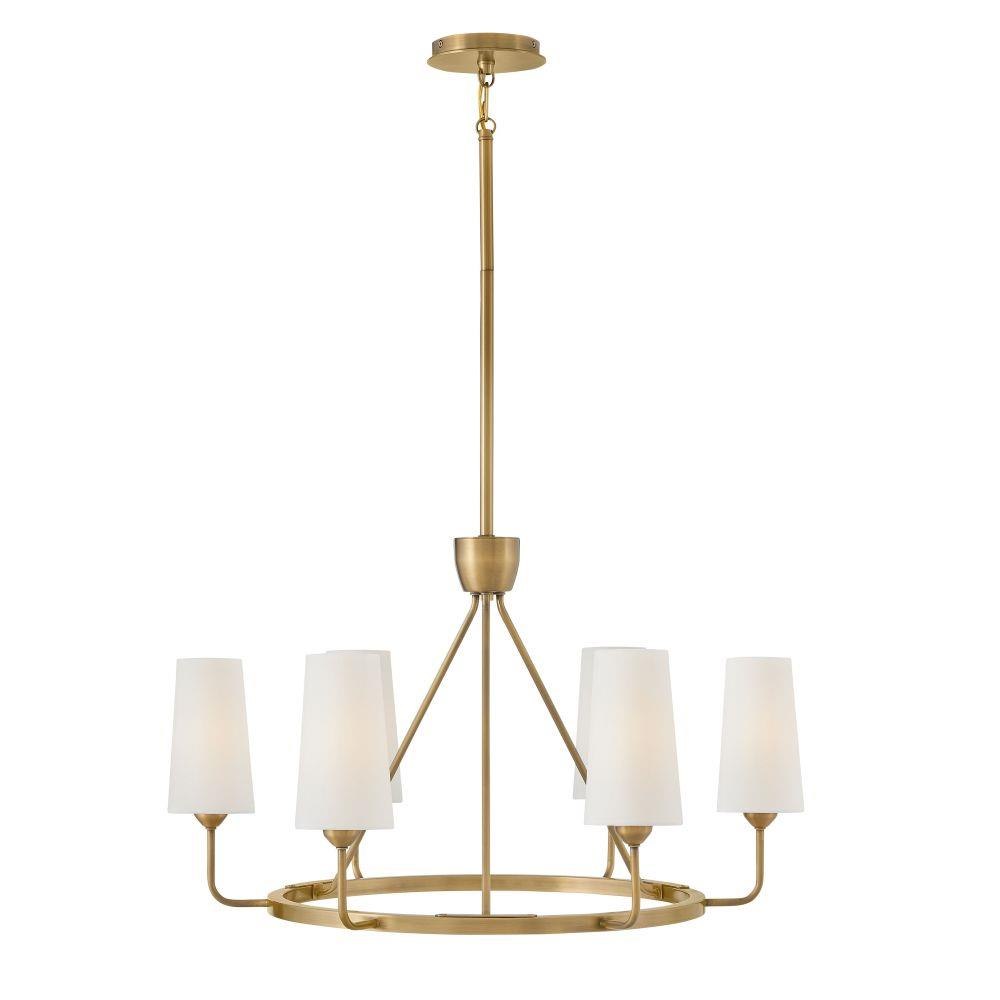 Lewis offers traditional charm paired with updated, transitional elements. Tall natural paper shades feature fine stitching detail against a Heritage Brass or Black Oxide finish to enhance timeless interiors.Suitable for use in dry (indoor) locations as defined by NEC and CEC. Meets United States UL Underwriters Laboratories & CSA Canadian Standards Association Product Safety Standards / This fixture includes multiple down stems in various lengths to customize the installation height of the fixture, including one 6" stem and two 12" stems. / This stem hung fixture may be hung on a sloped ceiling / Striking black finish enhances design / Classic, elegant lines and timeless details enhance a traditional space