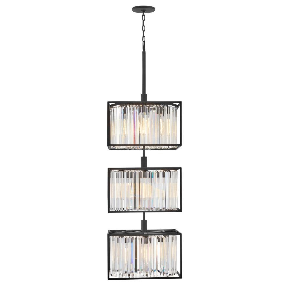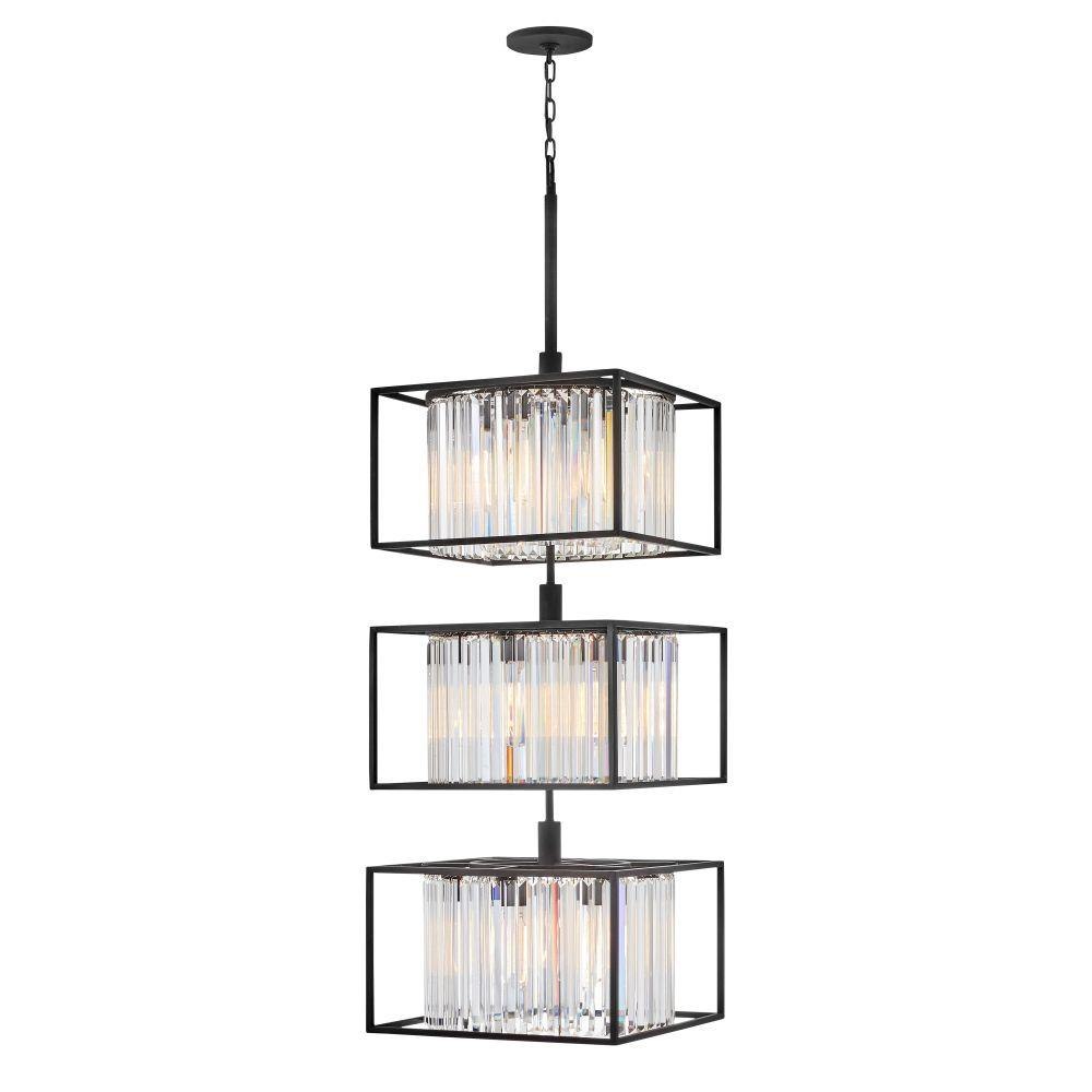 Giada is a contemporary chandelier collection with stunning crystal prisms set within a frame of Black to create a seamless, sparkling, jewelry-like effect.Suitable for use in dry (indoor) locations as defined by NEC and CEC. Meets United States UL Underwriters Laboratories & CSA Canadian Standards Association Product Safety Standards / This fixture includes multiple down stems in various lengths to customize the installation height of the fixture, including one 6" stem and two 12" stems. / Merging the best of traditional and modern elements, with a sophisticated and streamlined silhouette perfect for any space / Striking black finish enhances design / Fixture weighs over 50lbs. Must be supported independently of the outlet box unless the outlet box is UL listed for the appropriate weight.