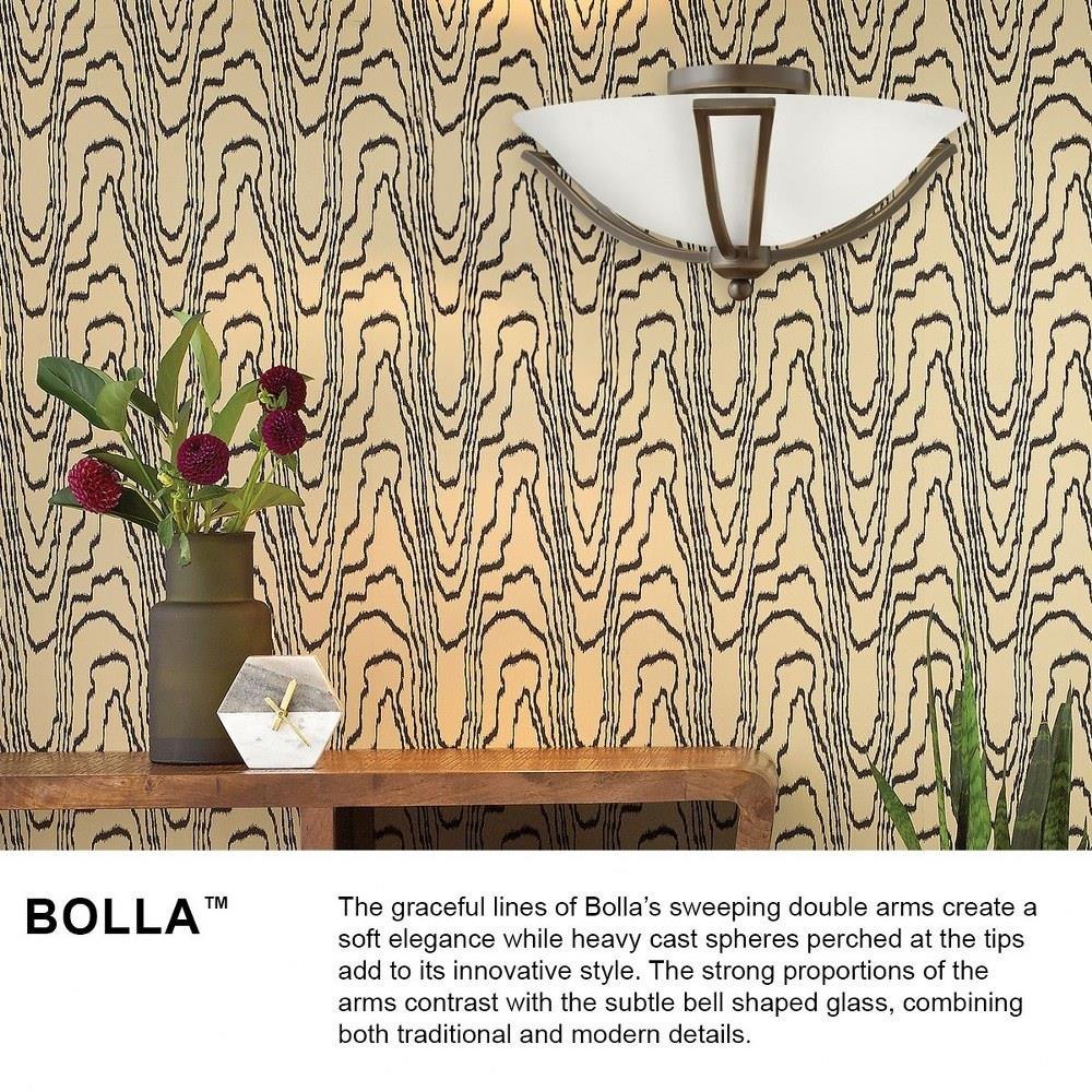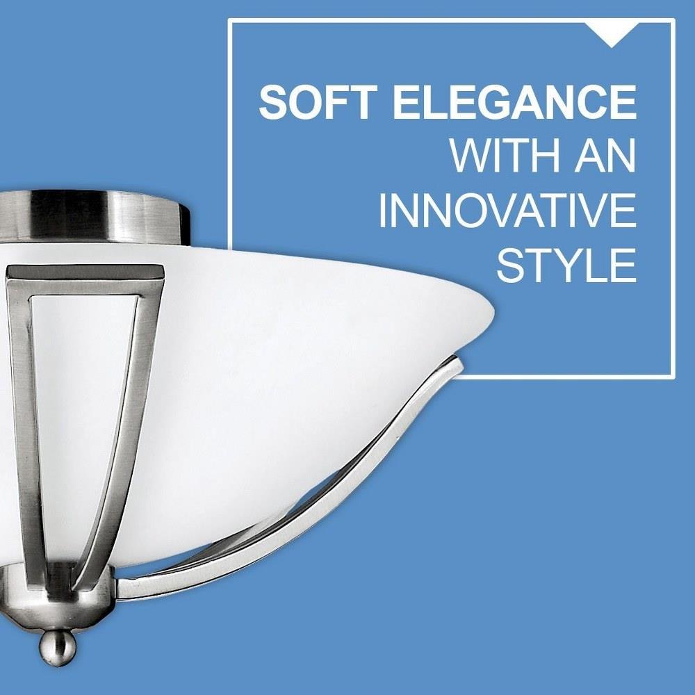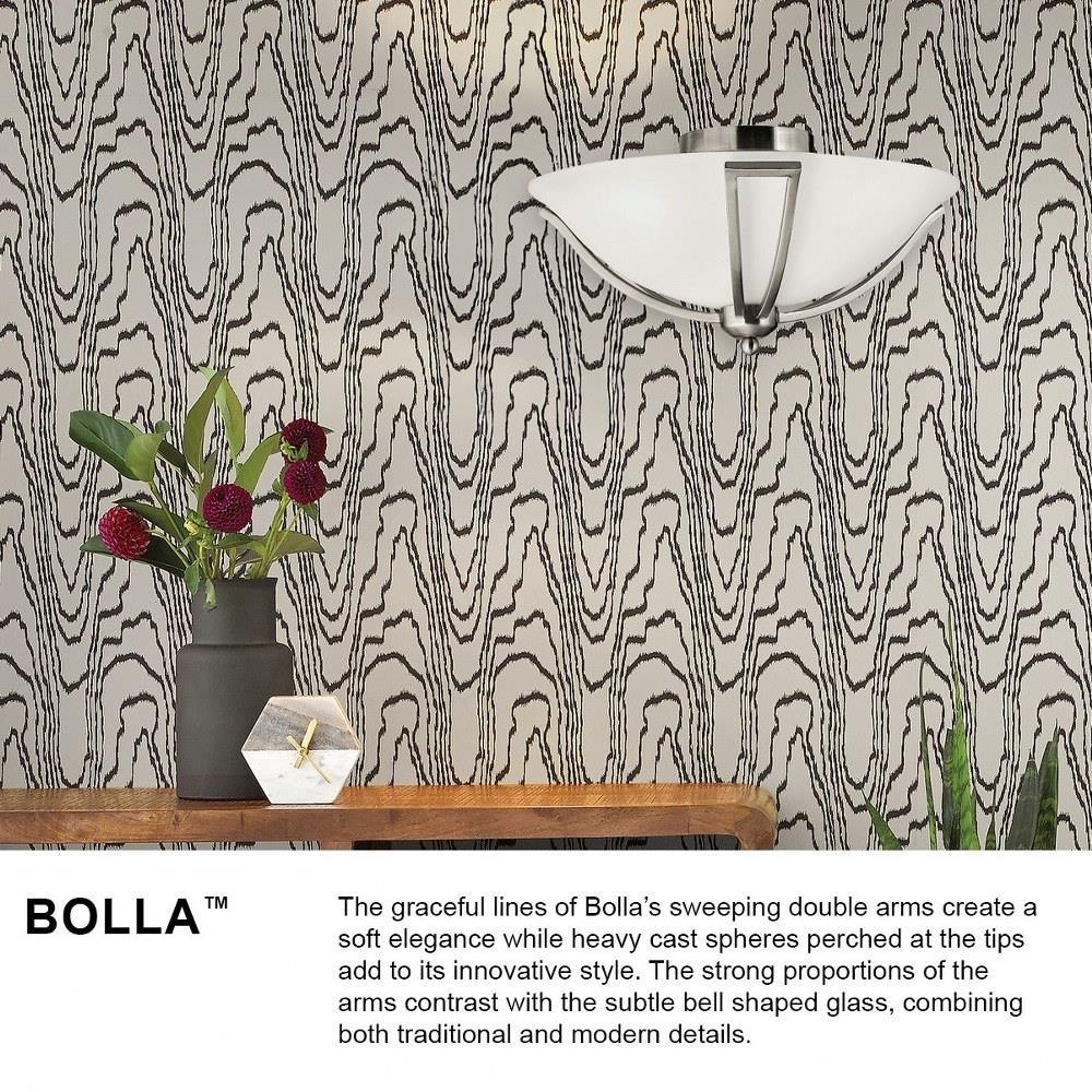 The graceful lines of Bolla create a soft elegance, while heavy cast ball transition details add to its innovative style. The strong proportions of the design contrast with the subtle bell shaped glass, combining both traditional and modern details.Suitable for use in dry (indoor) locations as defined by NEC and CEC. Meets United States UL Underwriters Laboratories & CSA Canadian Standards Association Product Safety Standards / Classic matte brushed nickel finish / Merging the best of traditional and modern elements, with a sophisticated and streamlined look