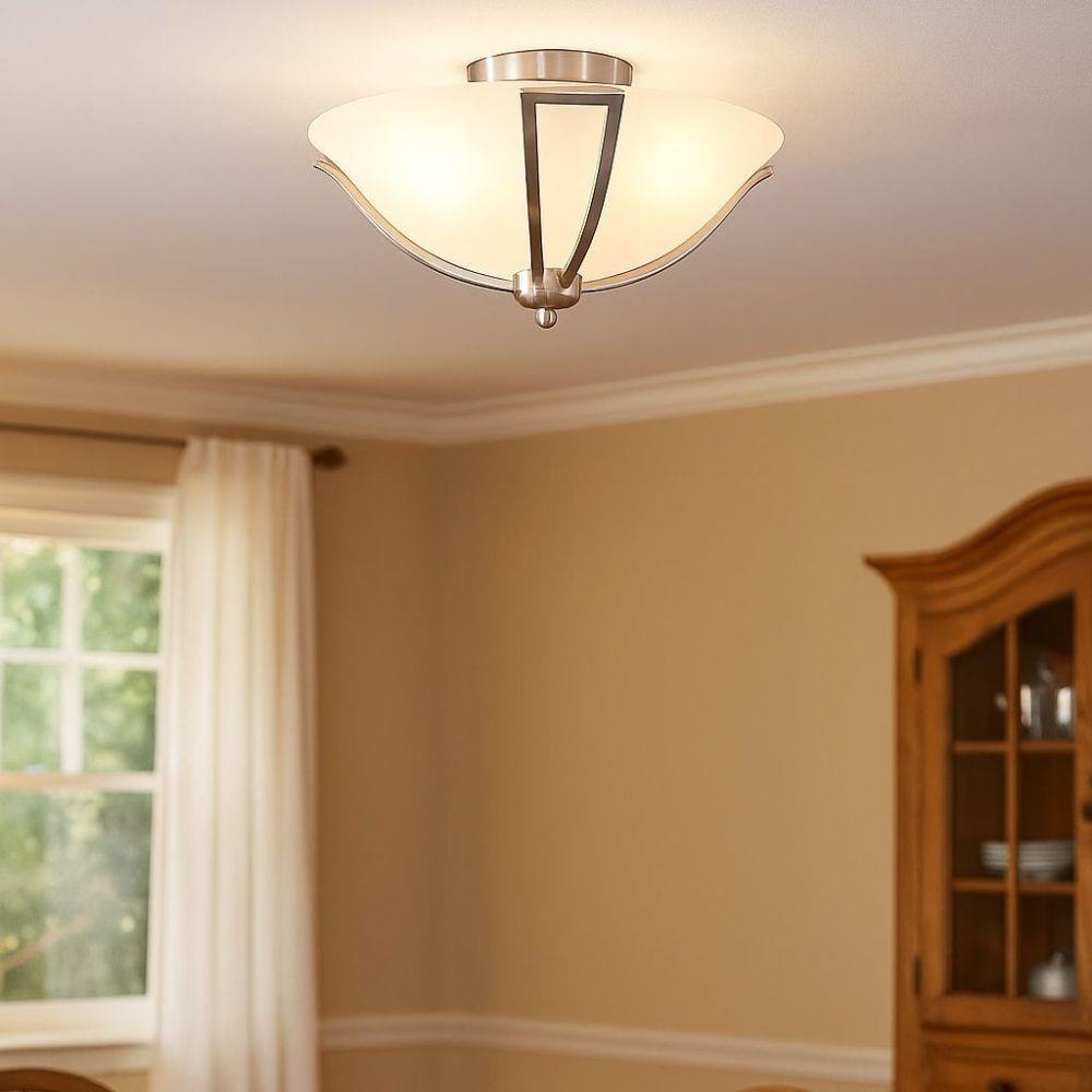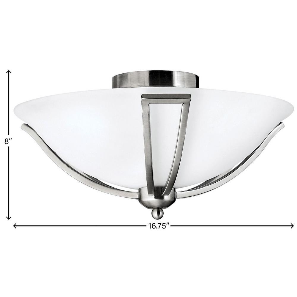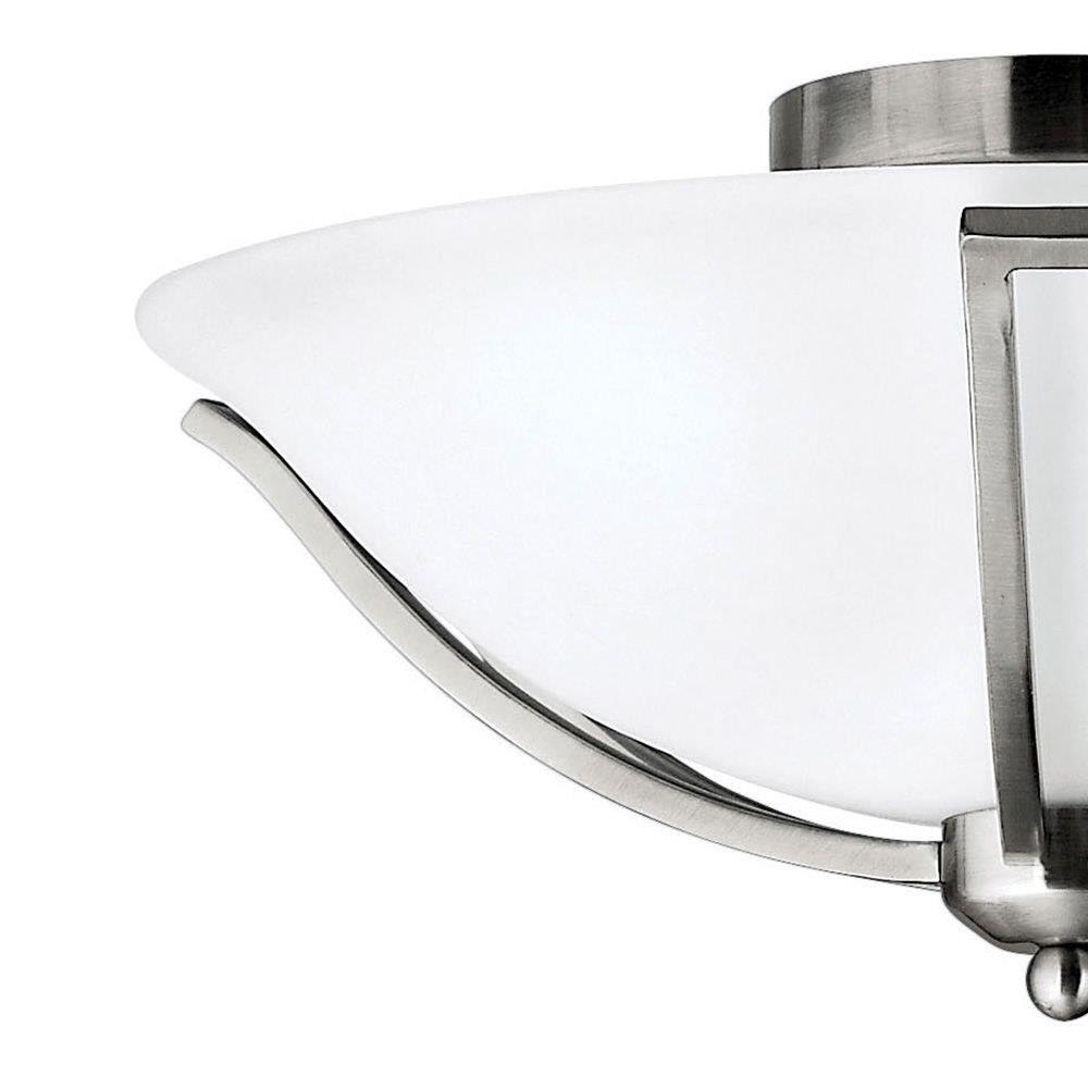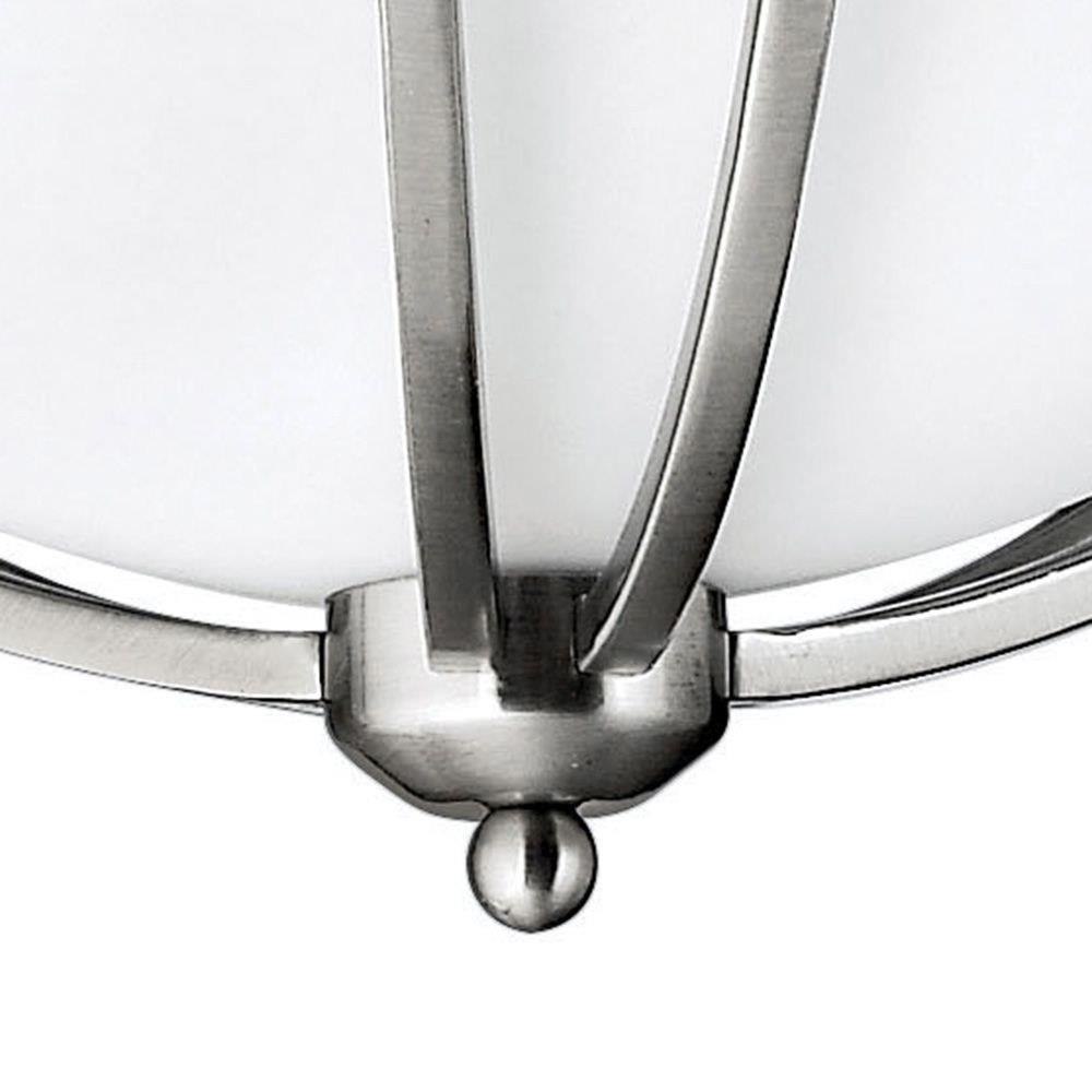 The graceful lines of Bolla create a soft elegance, while heavy cast ball transition details add to its innovative style. The strong proportions of the design contrast with the subtle bell shaped glass, combining both traditional and modern details.Suitable for use in dry (indoor) locations as defined by NEC and CEC. Meets United States UL Underwriters Laboratories & CSA Canadian Standards Association Product Safety Standards / Classic matte brushed nickel finish / Merging the best of traditional and modern elements, with a sophisticated and streamlined look