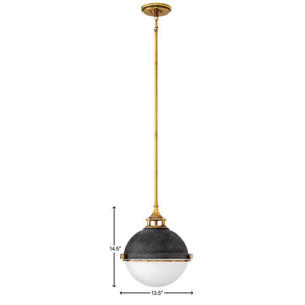 This Large Stem Hung Orb Pendant is a versatile, multi-tasking light for any space. Decorative details that don't go unnoticed - a cast-fitter and an elegant capture ring secure the Etched Opal glass shade with decorative cast knobs. The mellow, flaxen sheen of the Satin Brass finish complements multiple decors - Chic, Classic, Industrial, Transitional, Vintage. Illuminated by (2) 10w Medium LED bulbs (not included) this fixture stands out as a reading light next to a bed or desk, accent light in kitchens, dining rooms, and family rooms, or as ambient light in hallways.