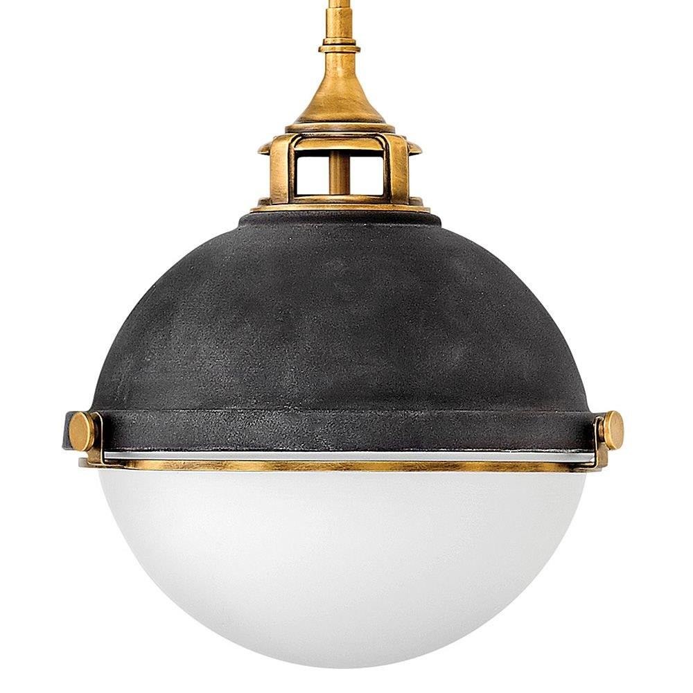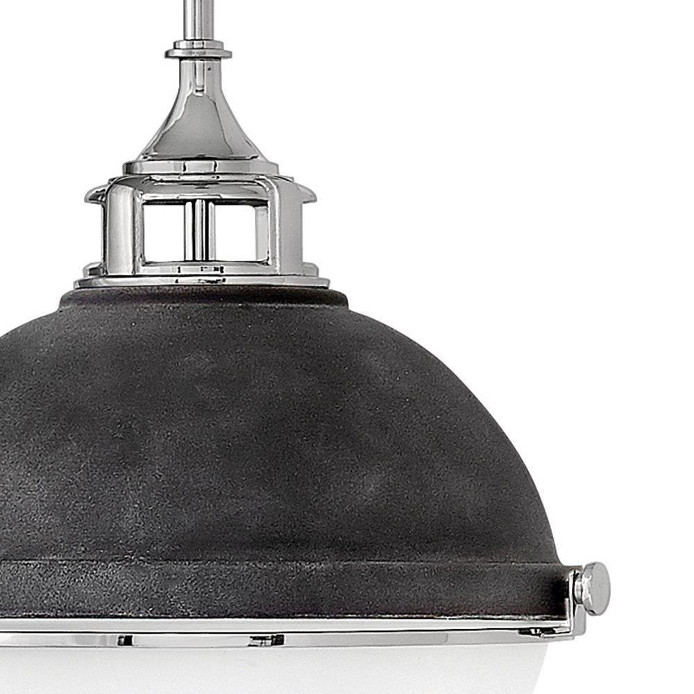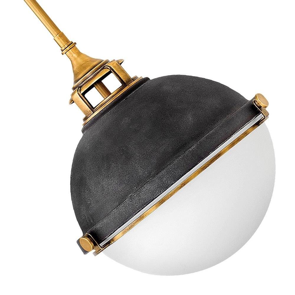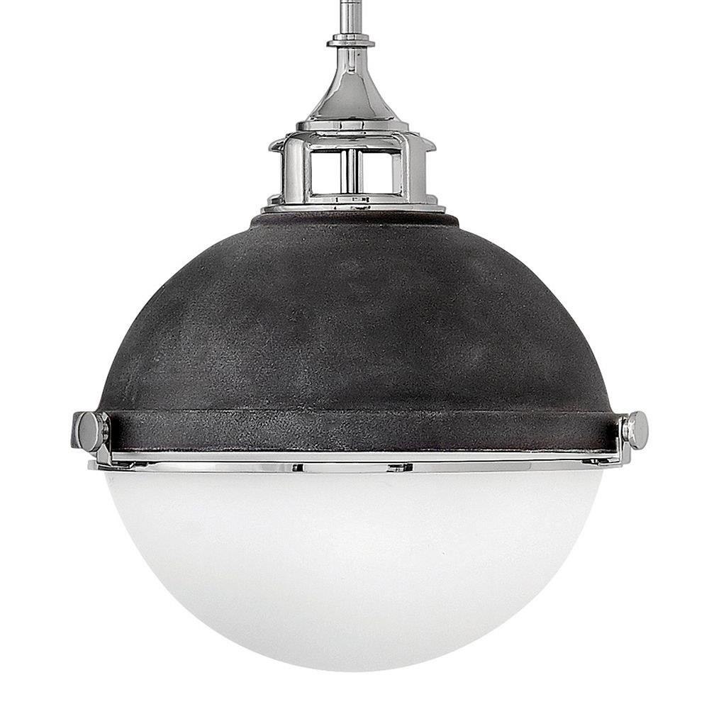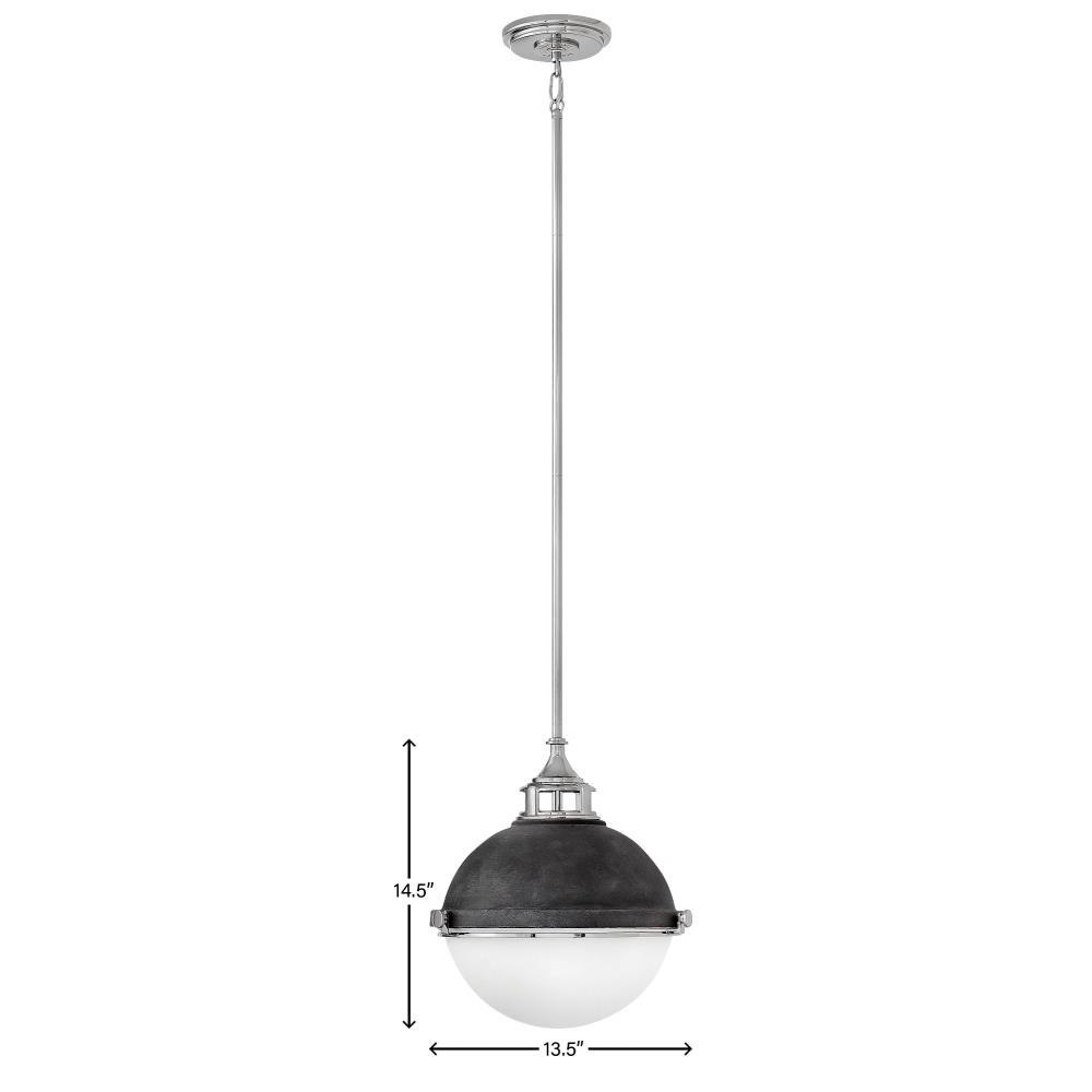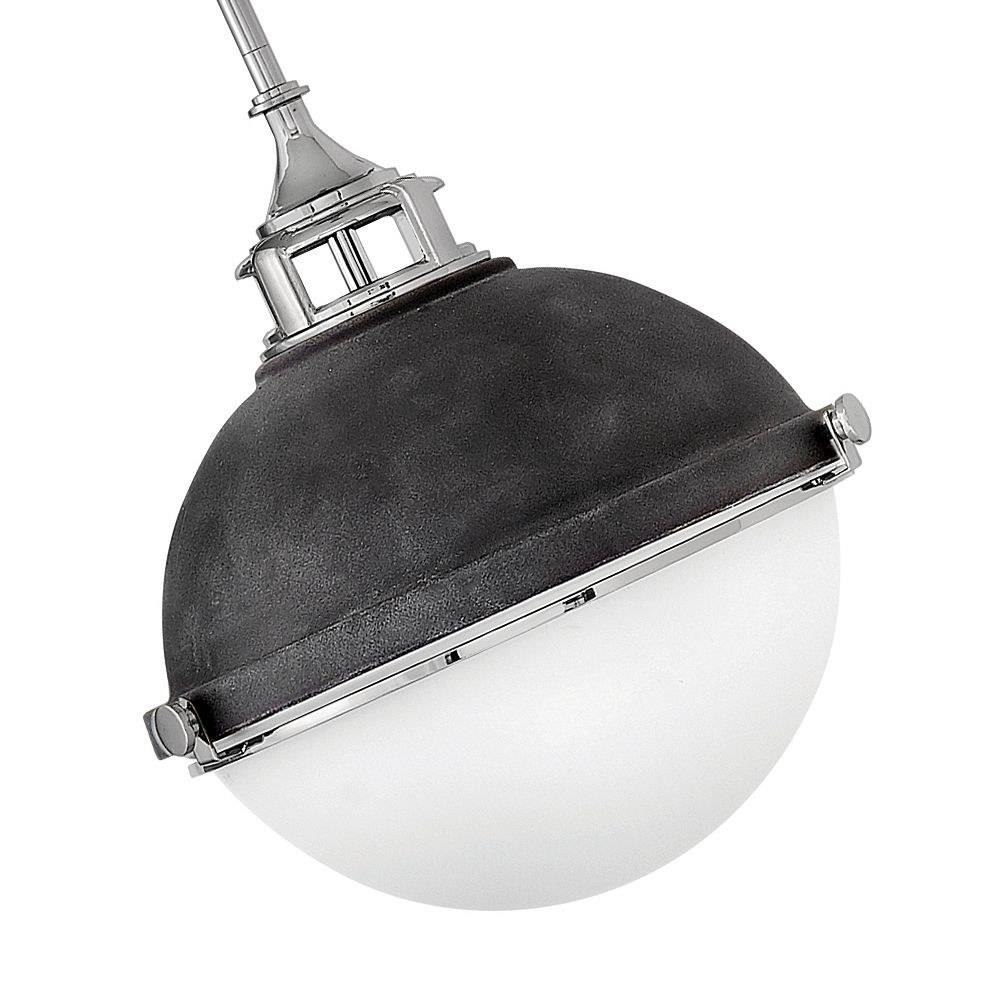 Fletcher’s chic vibe transcends style boundaries. A seamless dome shade features a cast-fitter and an elegant capture ring that secures the etched opal glass with decorative cast knobs. Spanning vintage to industrial, classic to transitional, Fletcher seamlessly unifies any décor declaration.Suitable for use in dry (indoor) locations as defined by NEC and CEC. Meets United States UL Underwriters Laboratories & CSA Canadian Standards Association Product Safety Standards / This fixture includes multiple down stems in various lengths to customize the installation height of the fixture, including one 6" stem and two 12" stems. / Angular lines, a bold finish, simple shape and sturdy details merge for a robust but pared down industrial design / Rich gray tone / This stem hung fixture may be hung on a sloped ceiling