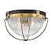 Product Summary: Hinkley Crew Medium Flush Mount Ceiling Light - Caged Style, 2-Light, Clear Ribbed Glass Shade, Vintage Maritime - Heritage Brass with Black Accents