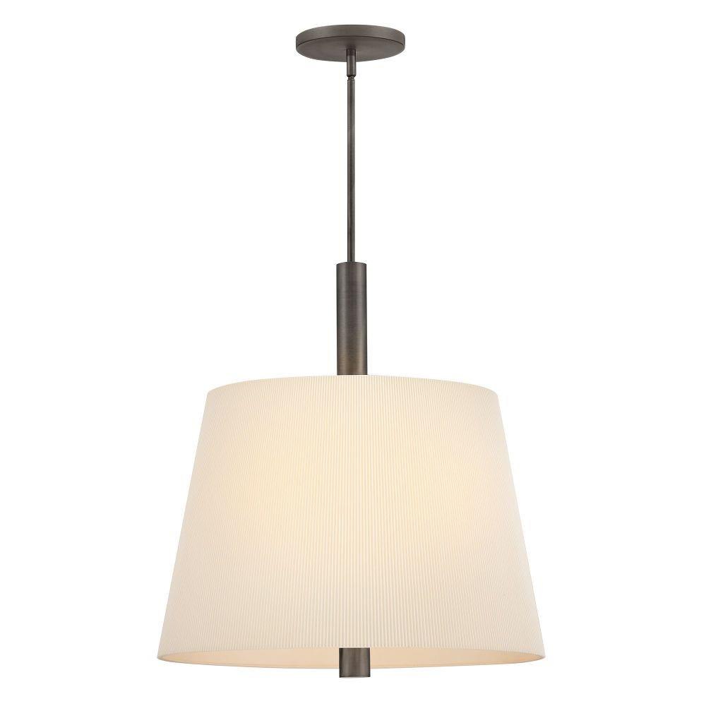A structured design with a touch of Americana, Clive’s tailored shade features a micro-pleated texture that adds a refined feel to the slightly tapered silhouette. A slim stem grounds the off-white fabric with a contrasting Heritage Brass or Slate Bronze finish.