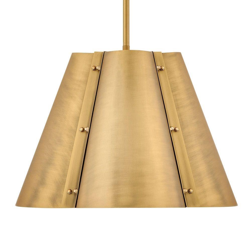 Strong in style and design, Bowman’s makes a transitional statement with a tapered quatrefoil shade accented by decorative knobs along symmetrical vertical supports. Heritage Brass or Slate Bronze finishes complement any living or dining décor with polished metallic tones.