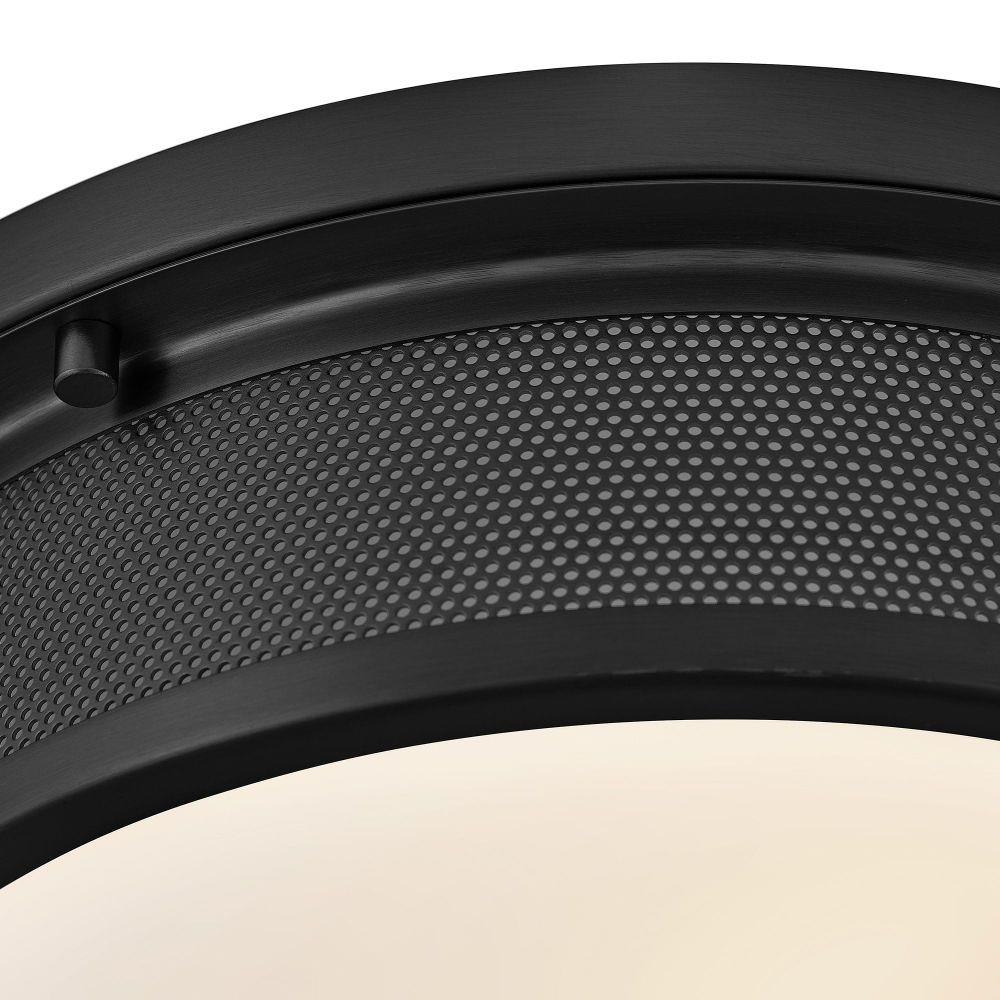 Precisely shaped with chic, minimalist style, Pierce’s low-profile silhouette easily fits any bathroom or living space. A large Etched Opal glass diffuser is framed in a Black or Lacquered Brass finish to easily complement your décor, while a band of perforations casts a glow across your ceiling.