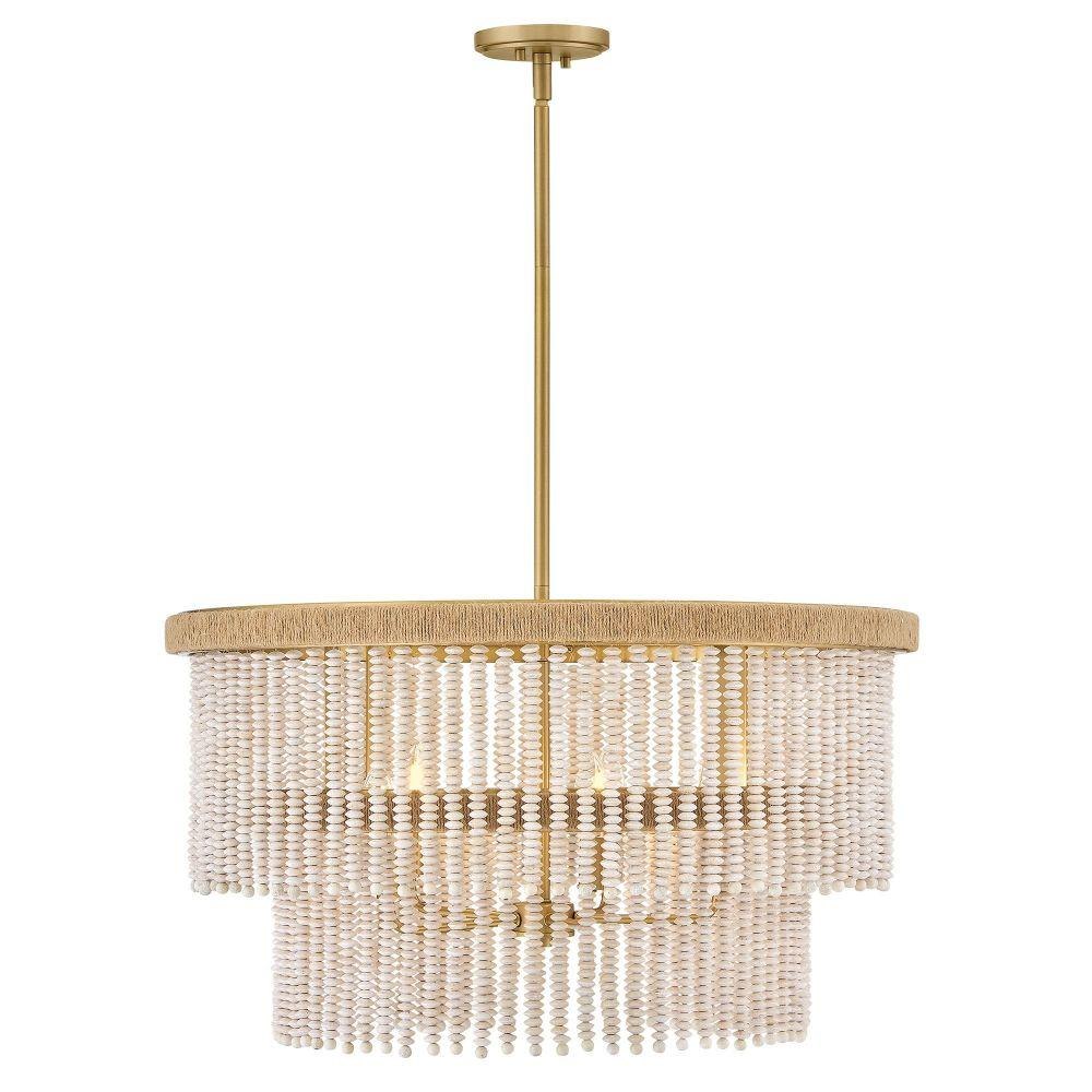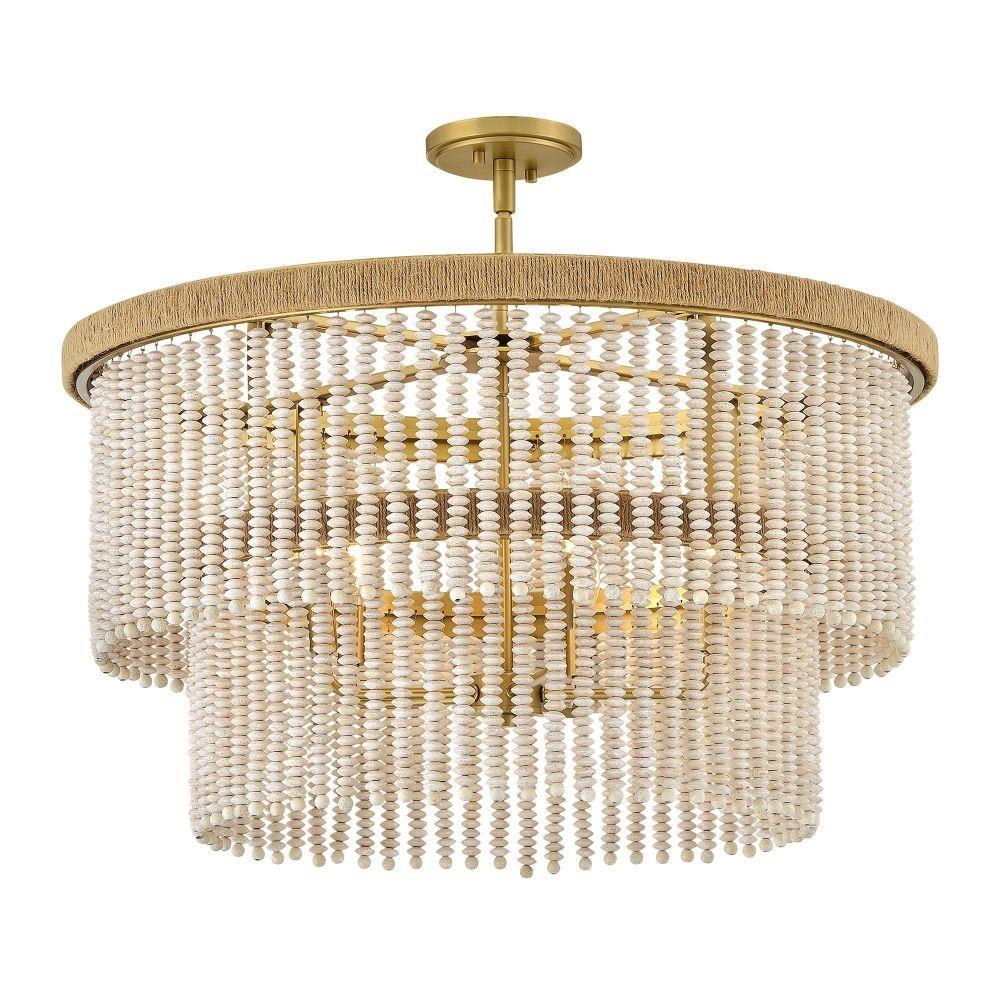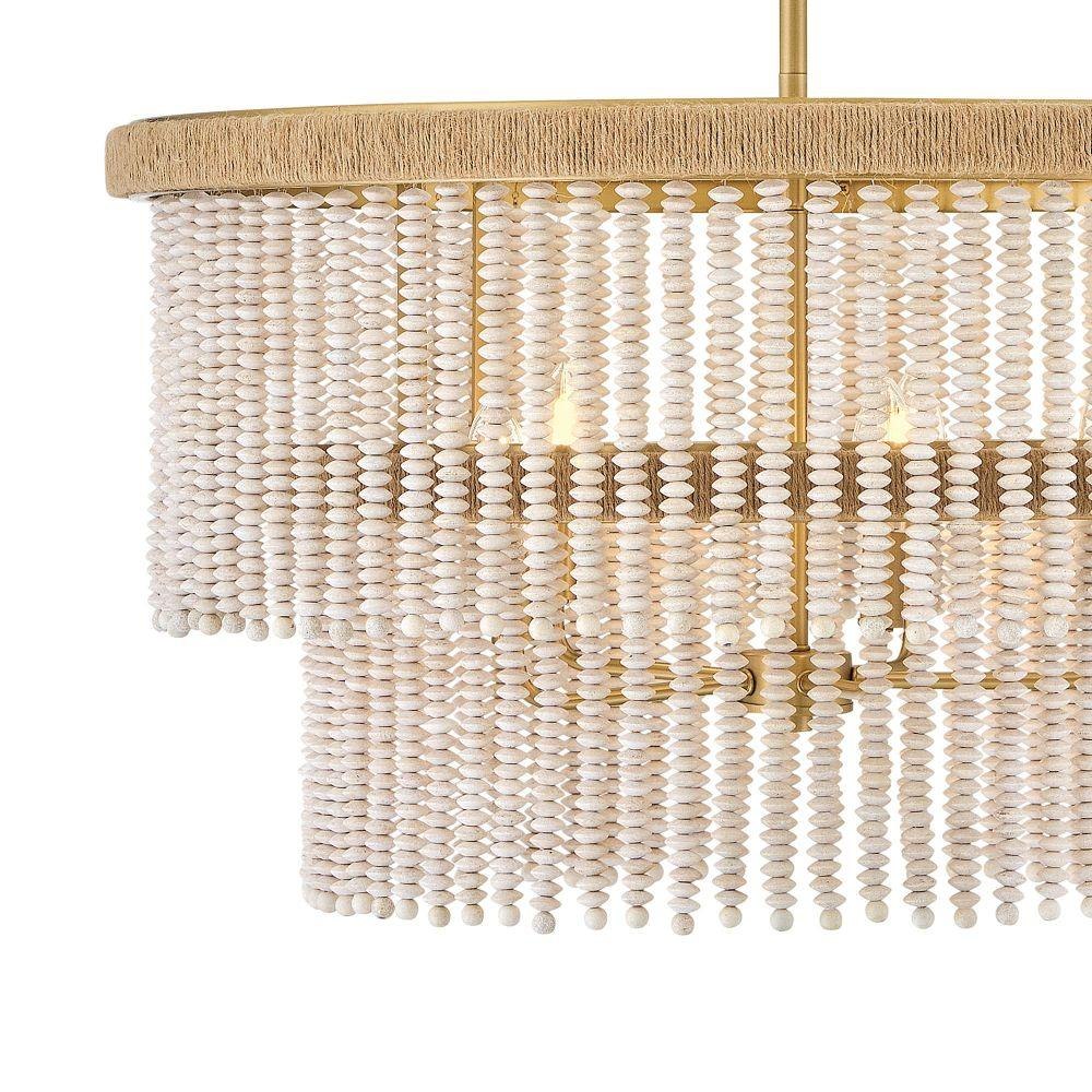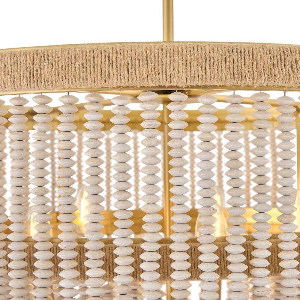 Indra blends coastal styling with an elegant transitional silhouette to fill your space with a naturally inspired atmosphere. A hand-strung curtain of stacked, taupe wooden beads diffuses warm illumination, while a frame hand-wrapped in natural fiber jute rope adds a touch of organic texture to your décor.