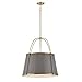 Hinkley Clarke Medium Drum Chandelier Pendant, Dark Matte Grey Metal Shade, 1-6" and 2-12" Down Rods, Even or Sloped Ceilings, Lacquered Dark Brass Finish