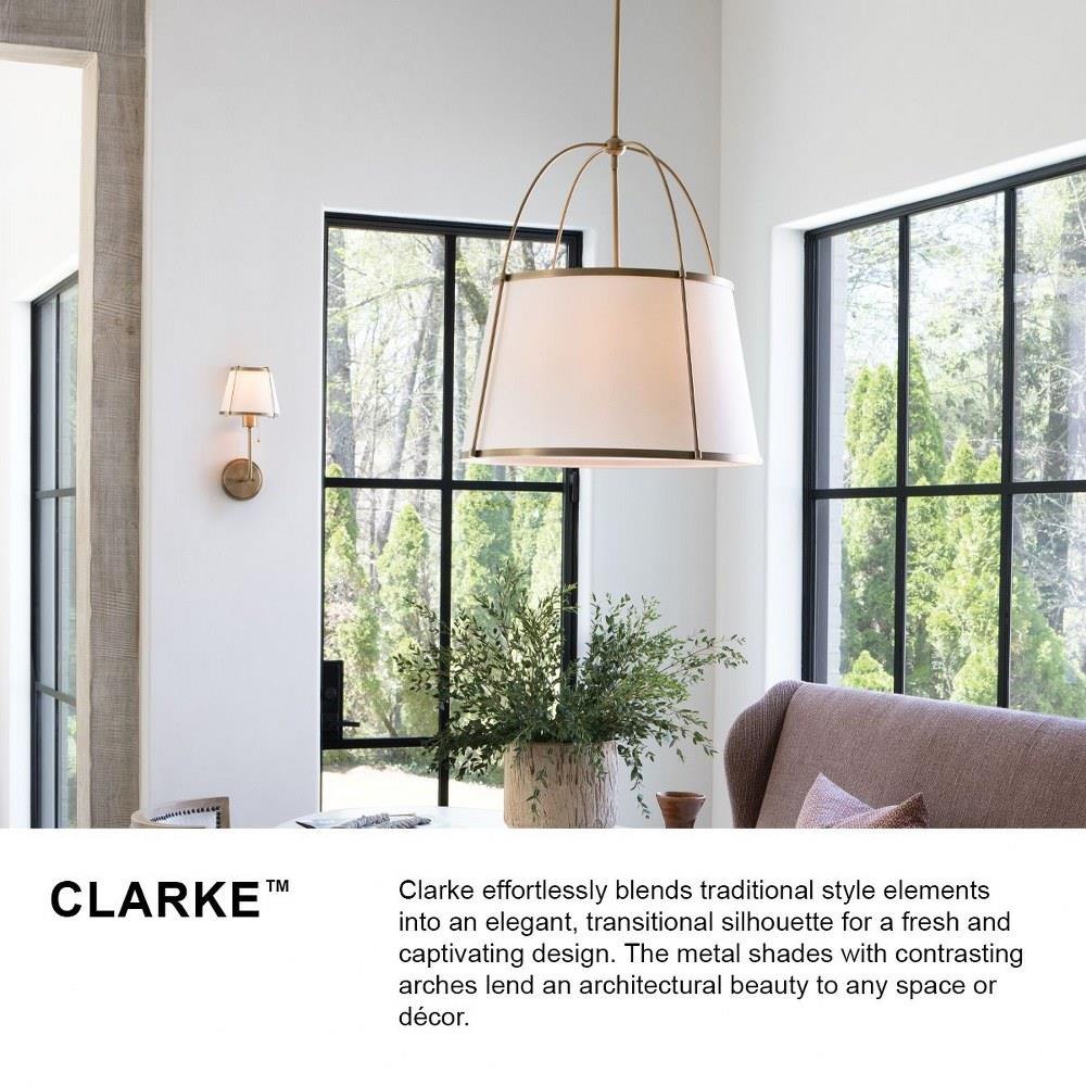 An effortless blend of classic style elements, Clarke’s transitional design is fresh and elegant. Its captivating metal or linen shade and contrasting frame lend architectural beauty to any space with a selection of sophisticated finishes to complement any décor aesthetic.