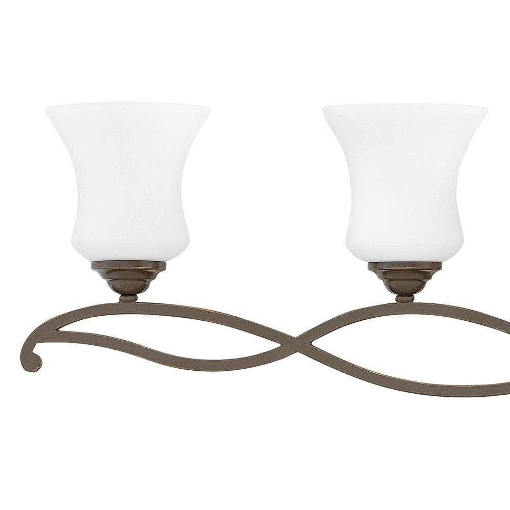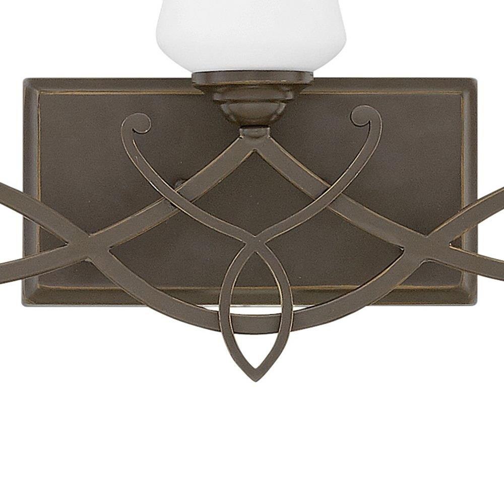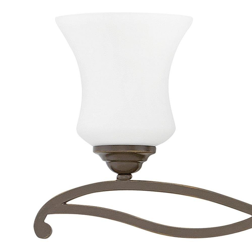 Brooke's updated traditional look features a minimalist forged scroll design in Antique Nickel and Olde Bronze that elegantly complements its etched opal glass.