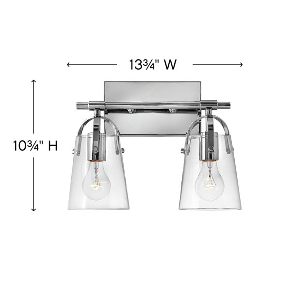 Hinkley Foster Small Two Light Bath Vanity displays a crisp transitional design, with its smooth clean lines, simple rectangular backing, and tapered glass shades that are elegantly held by the sturdy steel arms and their arching handles. This bath vanity modestly illuminates any space of the home and adds the perfect transitional flare to any space. Available in a classic Black or reflective Chrome finish.