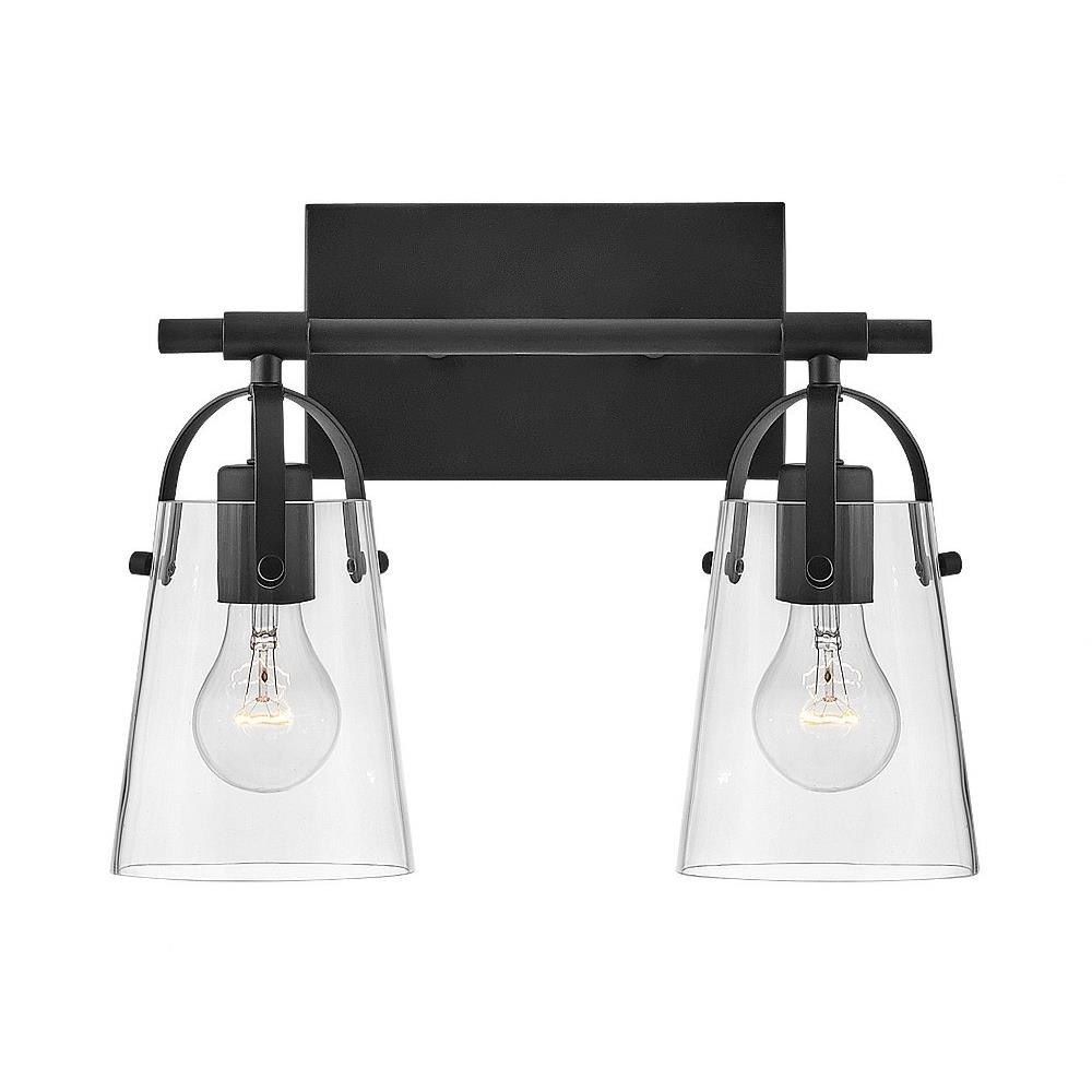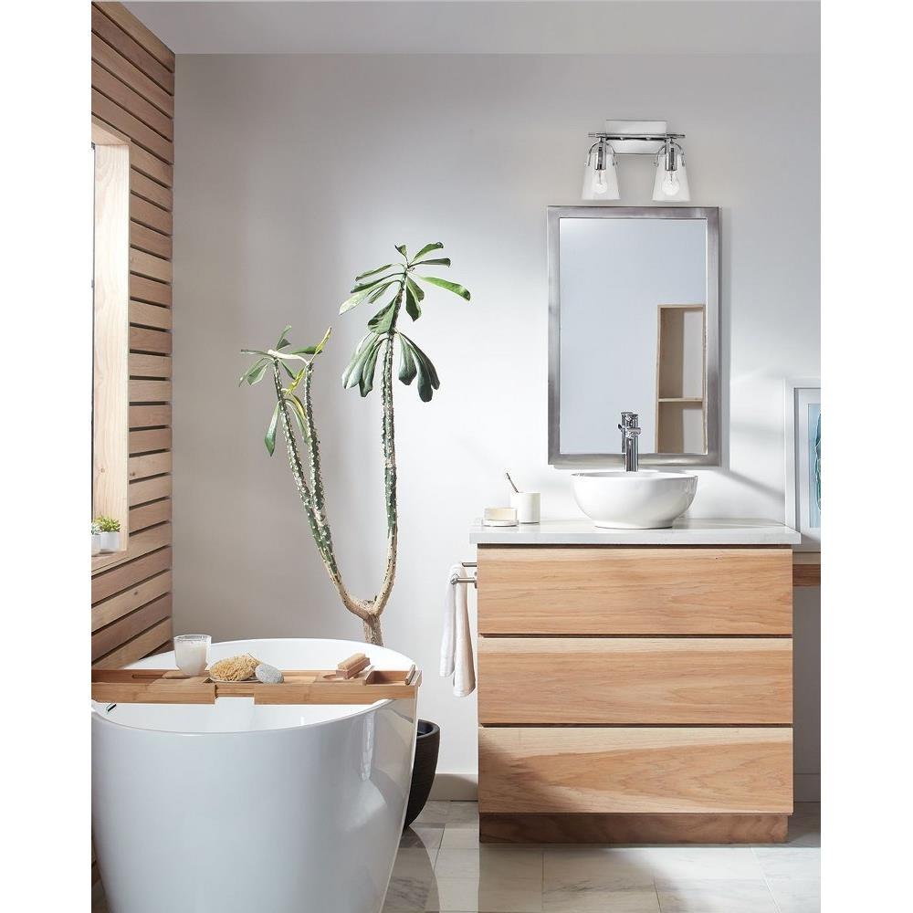 Clean and airy, Foster breathes composed simplicity into any bath space. Softly tapered glass shades suspended from arched handle prongs create a sophisticated transitional silhouette, enhanced by practical yet stylized details.