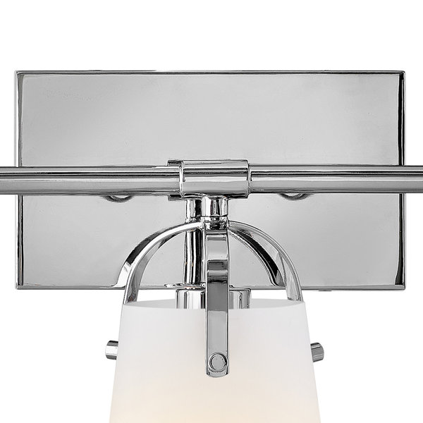 This medium three light bath vanity displays a crisp transitional design, with its smooth clean lines, simple rectangular backing, and tapered glass shades that are elegantly held by the sturdy steel arms and their arching handles. This bath vanity modestly illuminates any space of the home and adds the perfect transitional flare to any space. Available in a classic Black or reflective Chrome finish.