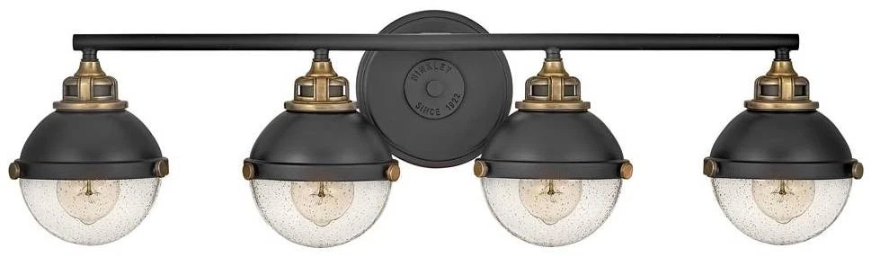 Hinkley Fletcher 32" Wide Seeded Glass and Black 4-Light Bath Light