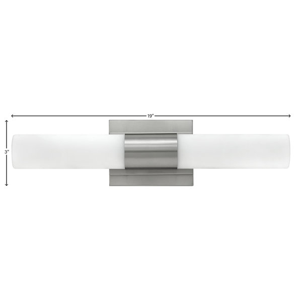 The tailored Transitional style of this medium LED bath vanity is a sleek, contemporary light fixture that is damp-rated for bathrooms and powder rooms, but stylish for installation elsewhere in your home. The reflective Polished Nickel bracelet grasps the linear Etched Opal glass, extending from the backplate that can be installed either horizontally or vertically. Illuminated by (2) integrated 16w LED light sources, this wall sconce is ADA-compliant and dimmable (with a CL-type dimmer SSL7A).
