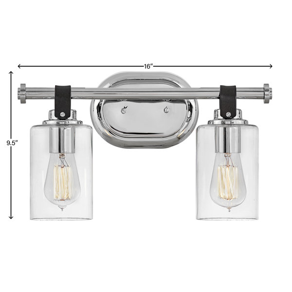 This vanity light has an elevated look with mixed-material details we're seeing everywhere lately. The frame is made from metal and is mounted on a rounded backplate. Faux leather straps support the two cylindrical shades for a simple look that works in harmony with the sleek clear glass. Inside, each shade houses a 100W bulb (sold separately). Best of all, this versatile vanity can be mounted either up or down for directed light exactly where you need it. And, this hardwired fixture is safe to use in damp locations and with dimmer switches.