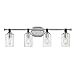 Product Summary: Hinkley Halstead 52884CM Large Four Light Bathroom Vanity Fixture, Modern Industrial, Clear Glass Shade, Faux Leather Strap, Chrome