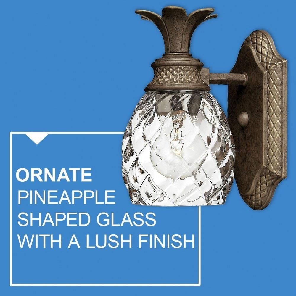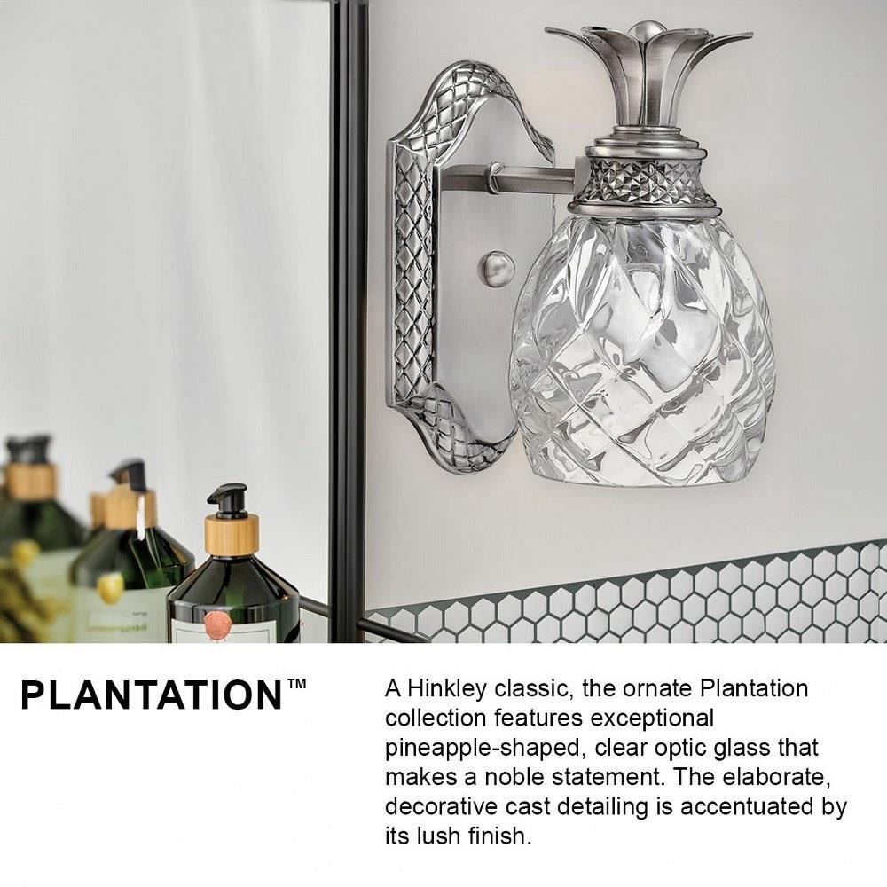 A Hinkley classic, the ornate Plantation collection features exceptional pineapple shaped, clear optic glass that makes a noble statement. The elaborate, decorative cast detailing is accentuated by its lush finish.Fixture can be mounted either up or down / Suitable for use in damp locations as defined by NEC and CEC. Meets United States UL Underwriters Laboratories & CSA Canadian Standards Association Product Safety Standards / Classic, elegant lines and timeless details enhance a traditional space / Rich dark brass finish