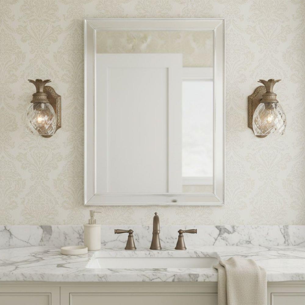 Clear Optic glass dome shade Made of brass Designed to cast a soft ambient light over a wide area Reversible Mounting - May be installed with the glass pointed upward or downwards Suitable for damp locations Number of Bulbs: 1 Bulb Base: Medium (E26) Bulb Type: Incandescent Bulb Included: No Watts Per Bulb: 100 Wattage: 100 Height: 8.75" Width: 5" Extension: 7" HCO: 5" Shade Height: 5" Shade Width: 4.875" Backplate Height: 8" Backplate Width: 4.75" Energy Star: No ADA: No