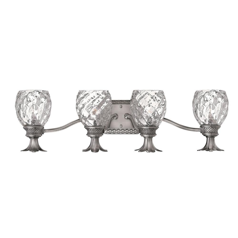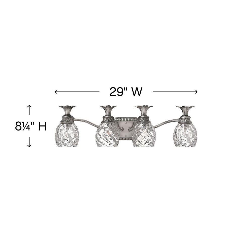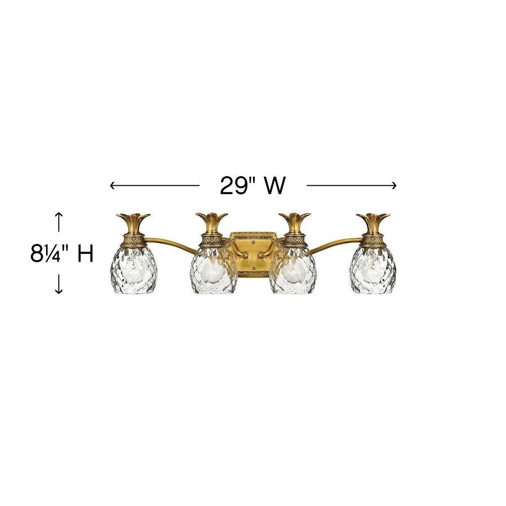 Clear Optic glass dome shade Made of Solid Brass Designed to cast a soft ambient light over a wide area Reversible Mounting - May be installed with the glass pointed upward or downwards Suitable for damp locations Backplate Height: 4.8" Backplate Width: 8" Bulb Base: Medium (E26) Bulb Included: No Bulb Type: Compact Fluorescent, Incandescent Extension: 6.8" (measured from mounting surface to furthest protruding point on fixture) Full Backplate: No HCO: 4.8" (height from center of outlet) Height: 8.3" Material: Brass Number of Bulbs: 4 Product Weight: 9 lbs UL Rating: Damp Location Voltage: 120v Wattage: 400 Watts Per Bulb: 100 Width: 29" (measured from furthest point left to furthest point right on fixture)Since 1922, Hinkley Lighting has been driven by a passion to blend design and function in creating quality products that enhance your life. Hinkley is continually recommended by interior and exterior designers, and is available to you through premier lighting showrooms across the country. They pride themselves in delivering superior customer service that is second to none. They know that you have goals when it comes to your home's décor, and they care about helping you achieve the final outcome you are looking for in every aspect. Hinkley Lighting provides post and pier mount lights that illuminate the exterior style that is the welcoming statement to your home.