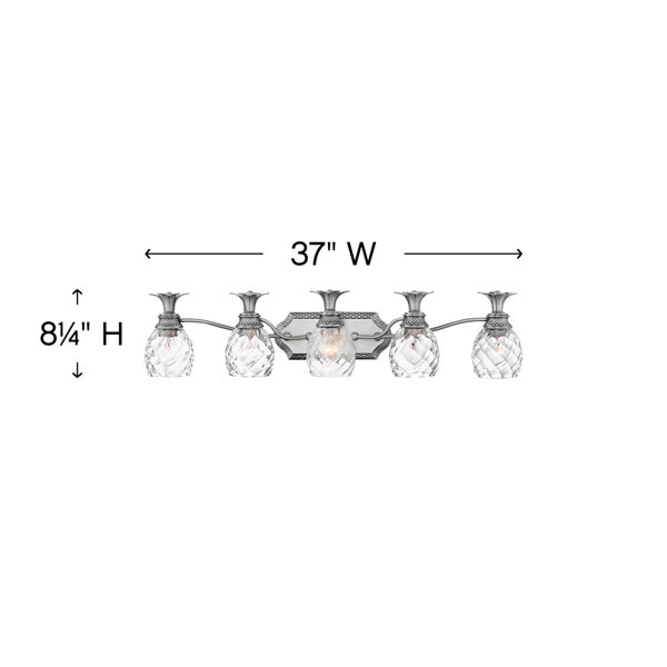 A classic, this features exceptional pineapple-shaped, clear optic glass that makes a noble statement. The elaborate, decorative cast detailing is accentuated by its lush finish.