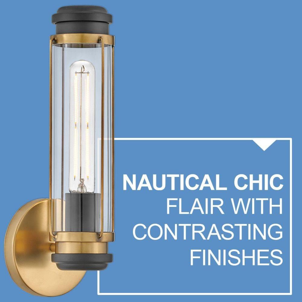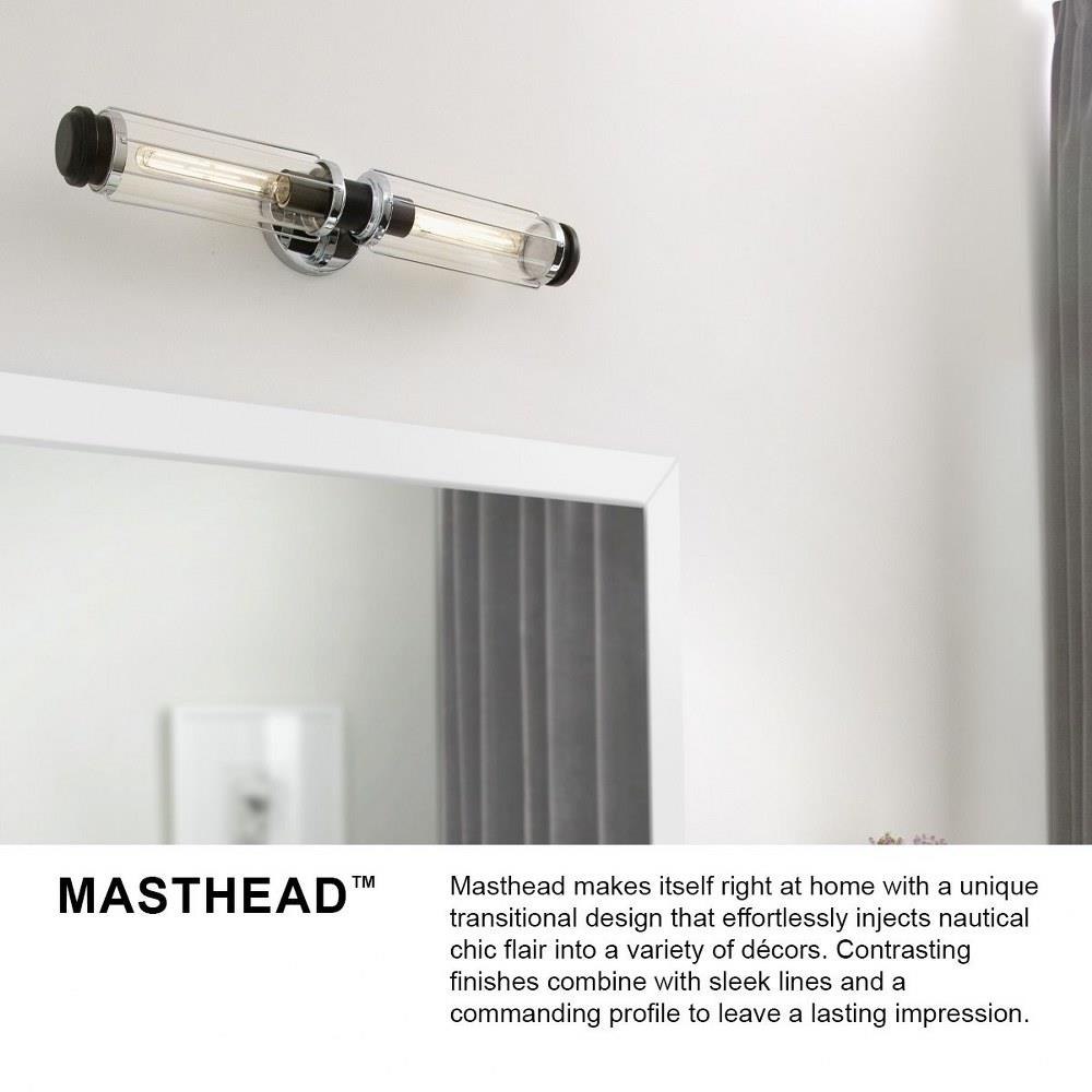 Masthead makes itself right at home with a unique transitional design that effortlessly injects nautical chic flair into a variety of décors. Contrasting finishes combine with sleek lines and a commanding profile to leave a lasting impression.Classic gleaming light brass finish / Fixture can be mounted either up or down / Suitable for use in damp locations as defined by NEC and CEC. Meets United States UL Underwriters Laboratories & CSA Canadian Standards Association Product Safety Standards / T9 or T10 bulbs required (not included) / Fixture can be mounted horizontally or vertically / Crisp, minimal design with elegant details make a fresh, modern impact / Ideal for vintage filament bulbs (not included) / Mounting hardware is hidden on the backplate to ensure a clean silhouette
