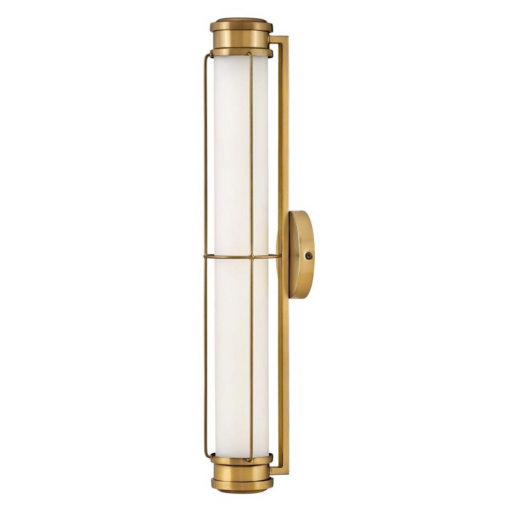 Saylor’s classic look epitomizes nautical chic. Etched opal glass, striking cross bars, and bold end caps merge with LED technology without sacrificing timeless appeal. This transitional silhouette can be mounted horizontally or vertically with an Invisimount system. Offered in three finishes, Saylor is sure to add a maritime flair to any space.Fixture can be mounted horizontally. / Classic gleaming light brass finish / Suitable for use in damp locations as defined by NEC and CEC. Meets United States UL Underwriters Laboratories & CSA Canadian Standards Association Product Safety Standards / LED components carry a 5-year limited warranty / Meets California Energy Commission 2013 & 2016 Title regulations/JA8 / Fixture can be mounted horizontally or vertically / Mounting hardware is hidden on the backplate to ensure a clean silhouette / Merging the best of traditional and modern elements, with a sophisticated and streamlined look