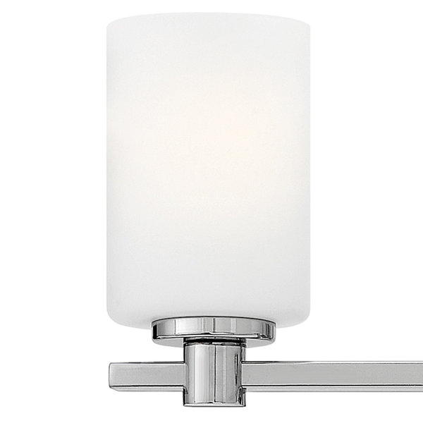This Medium Three Light Vanity has a clean design with a transitional style and will complement a variety of décor. A streamlined Brushed Nickel finish with a cylinder-style shade in a Etched Opal glass pairs perfectly with a 14w Medium LED bulb (not included). Damp rated, this light is perfect for the bathroom or any other space in the home.