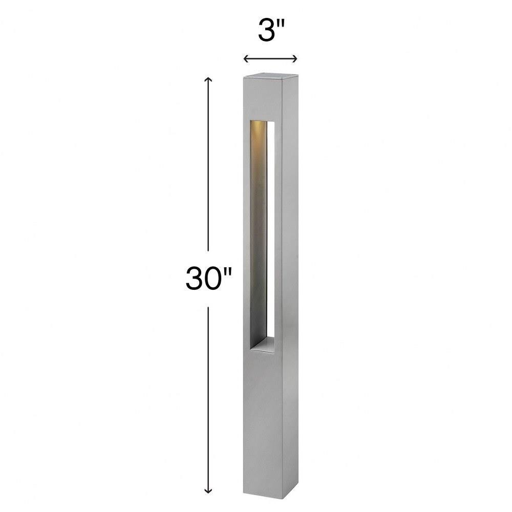 Designed for modern outdoor environments, the Atlantis 120V 8W LED Square Large Bollard stands 30 inches tall and measures 3 inches in width, delivering a sleek and minimalist aesthetic. Its bold lines and rich gray titanium finish complement contemporary architectural styles, making it an ideal choice for landscape lighting applications that require both form and function.