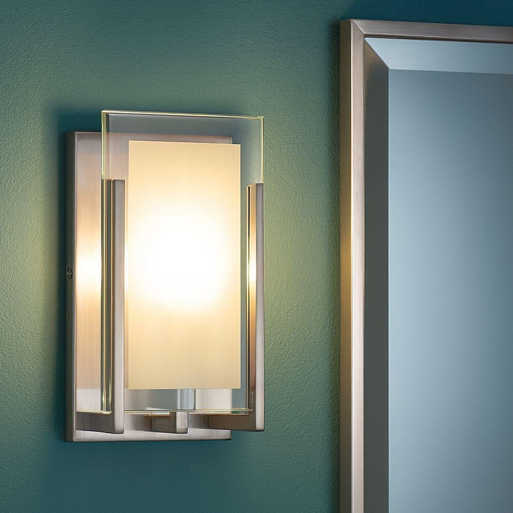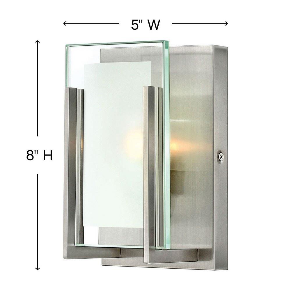 Latitude is contemporary and sleek, finding its true beauty in the minimalist design. The slim glass panel features rectangular etching while the subtle, split fork frames add understated architectural style.This fixture must be installed with shades/glass facing up toward the ceiling. / Suitable for use in damp locations as defined by NEC and CEC. Meets United States UL Underwriters Laboratories & CSA Canadian Standards Association Product Safety Standards / Fixture is ADA compliant and adheres to the standards and guidelines listed by the Americans with Disabilities Act / Classic matte brushed nickel finish / Mounting hardware is hidden on the backplate to ensure a clean silhouette / Bold lines and a clean, minimalist style creates a modern look