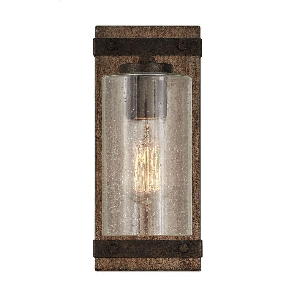 The fresh, rustic design of the Sawyer collection will enhance any living experience with a warm, cozy ambiance. The Aged Zinc finish with Distressed Black accents or Sequoia finish with Iron Rust accents paired with clear seedy glass offer a farmhouse chic style.