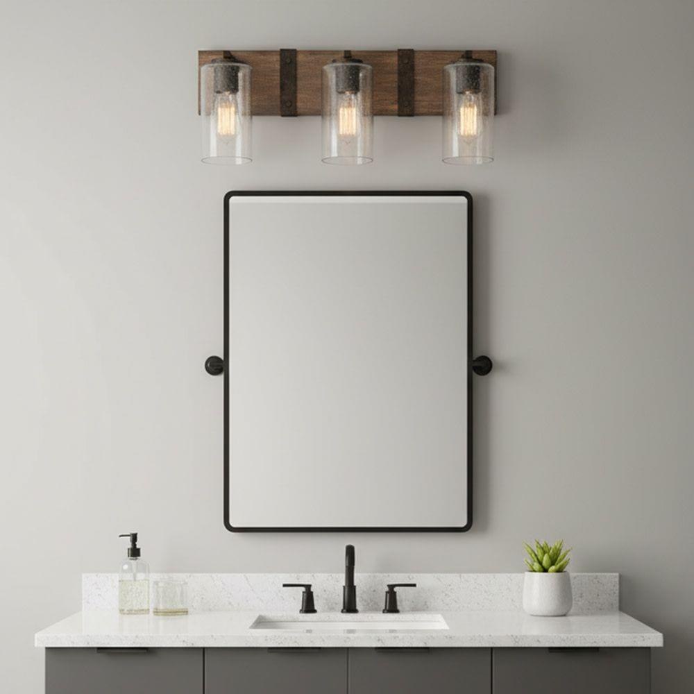 The fresh, rustic design of the Sawyer collection will enhance any living experience with a warm, cozy ambiance. The Aged Zinc finish with Distressed Black accents or Sequoia finish with Iron Rust accents paired with clear seedy glass offer a farmhouse chic style.