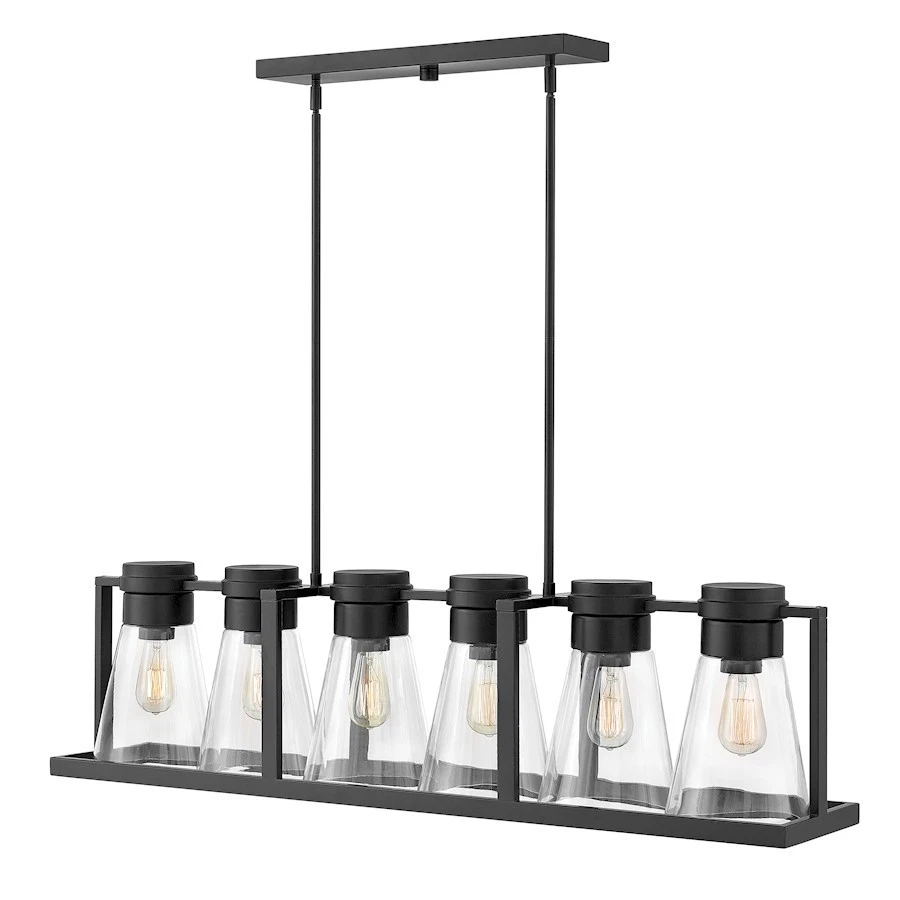 Hinkley 6 Light Refinery 11.25' Stem Hung Linear Chandelier, Black - 63306BK-CL