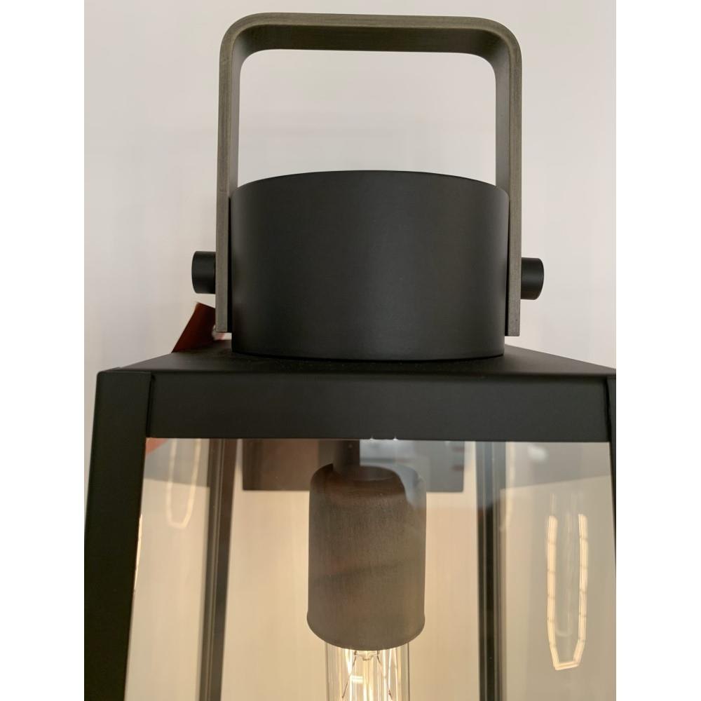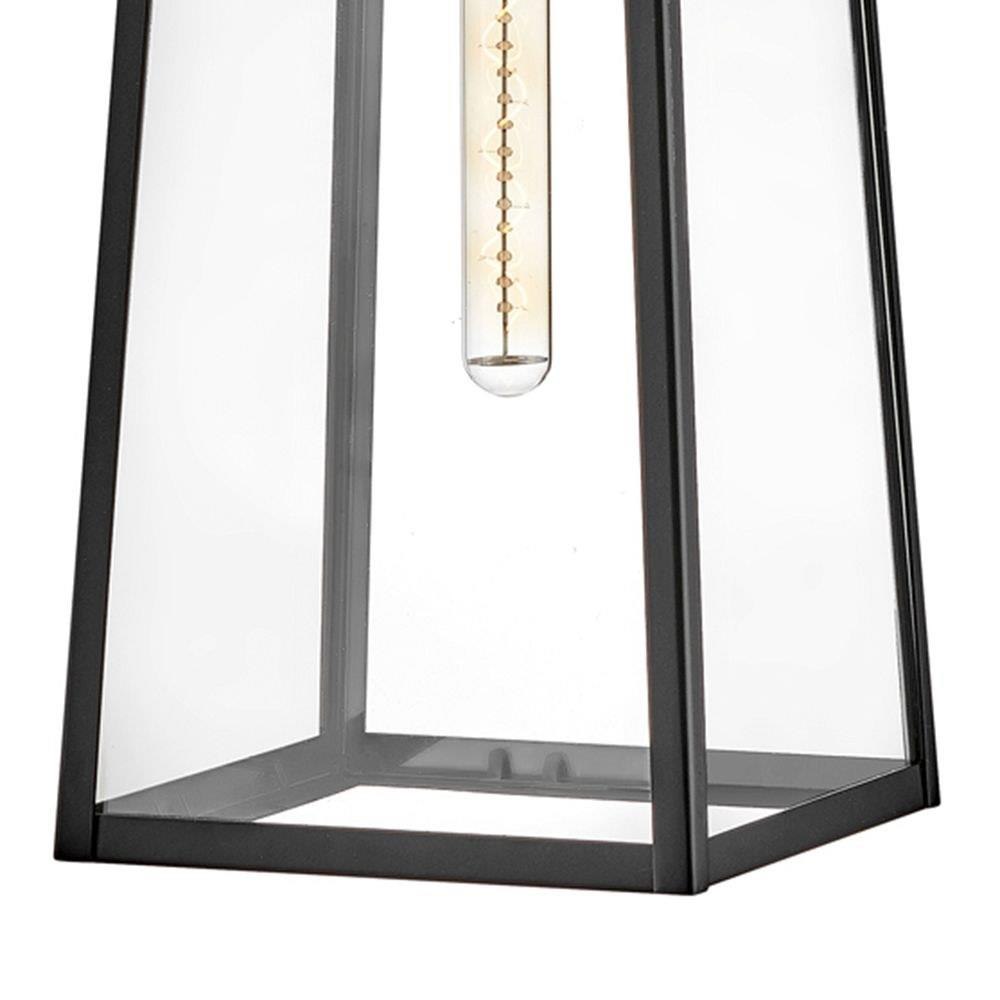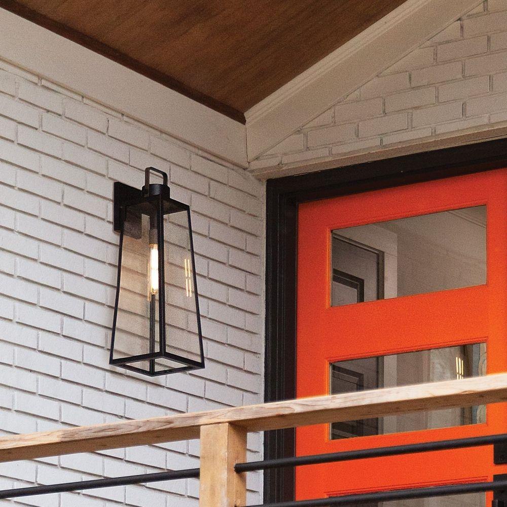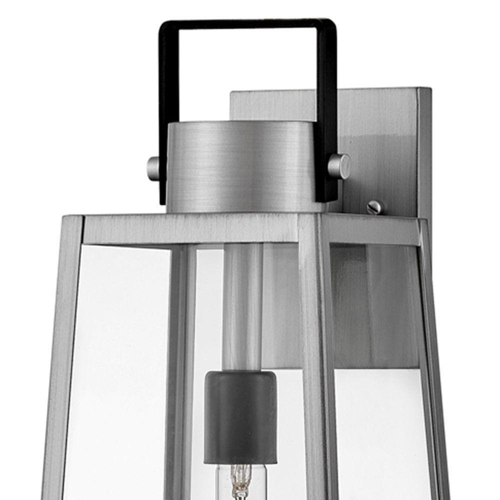 Hype up your alfresco area with the large Hugh wall-mounted outdoor lantern. Its sleek transitional 1-light design highlights the over scaled clear glass panes, framed by a luxe two-tone metal finish in classic Antique Brushed Aluminum with a matte Black accent. Pro tip: we recommend a tubular vintage filament bulb to make Hugh pop on porches, patios, or amp up any exterior space.