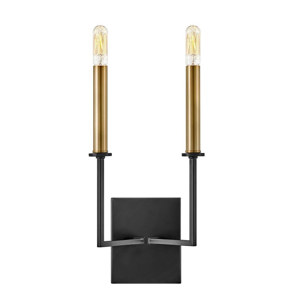 Lazlo’s sleek style feels lavish but without all the fuss. This 2-light tall Black sconce features classic candle sleeves streamlined with a modern makeover in Lacquered Brass. Install the Lazlo sconce anywhere you want extra illumination with a fresh edge.