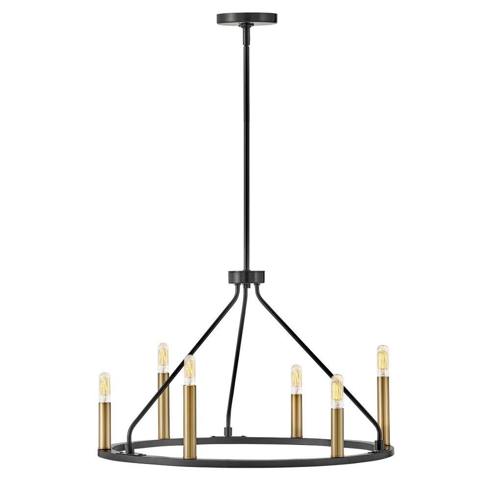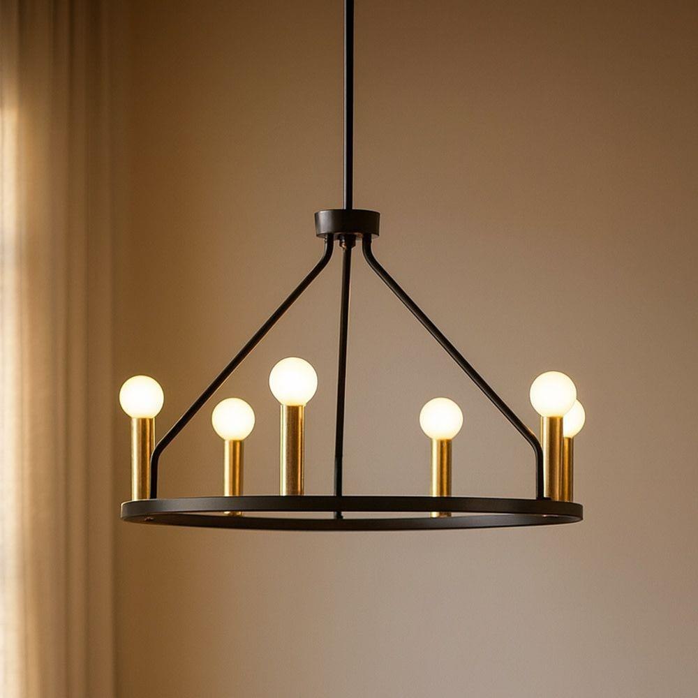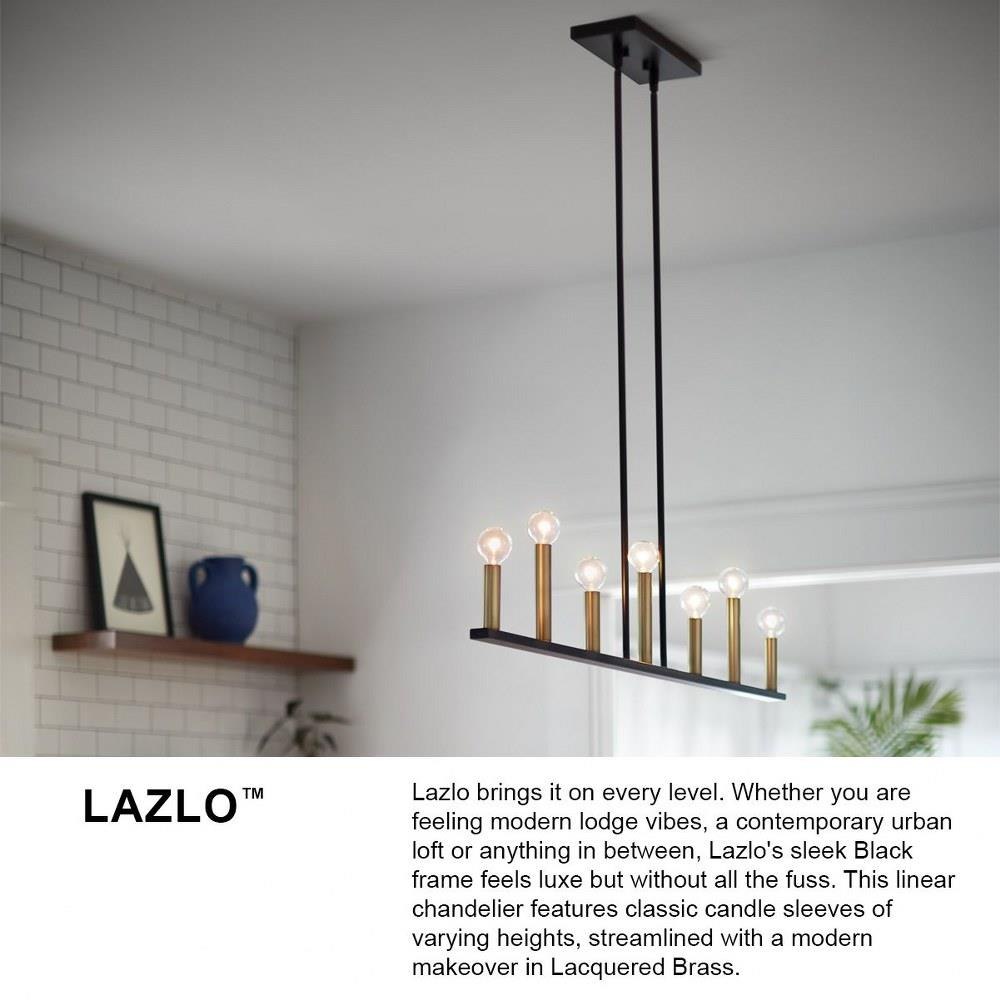 Lazlo brings it on every level. Whether you are feeling modern lodge vibes, a contemporary urban loft or anything in between, Lazlo’s sleek Black frame feels luxe but without all the fuss. This 6-light round chandelier features classic candle sleeves of varying heights, streamlined with a modern makeover in Lacquered Brass.