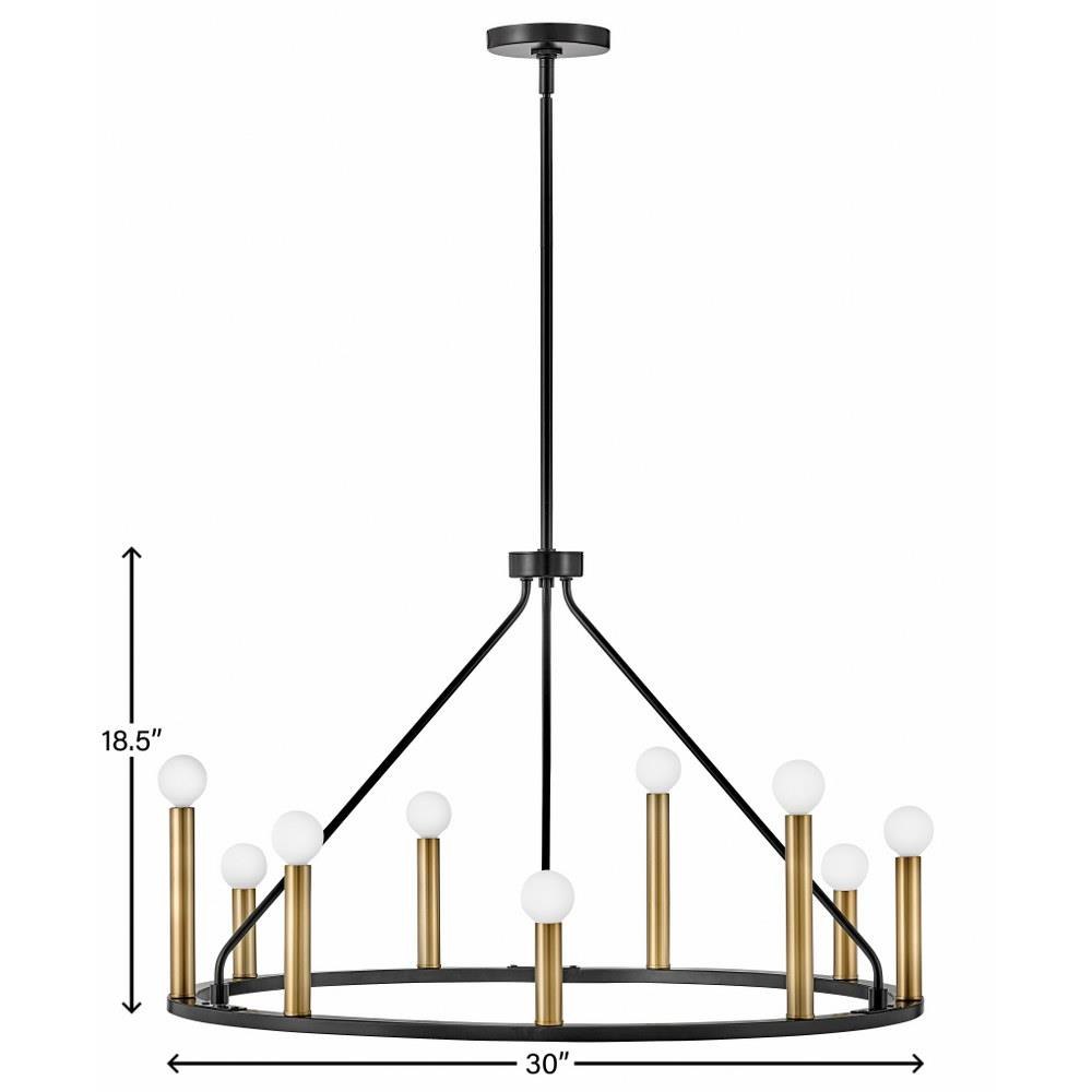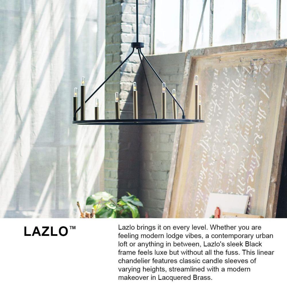 Lazlo brings it on every level. Whether you are feeling modern lodge vibes, a contemporary urban loft or anything in between, Lazlo’s sleek Black frame feels luxe but without all the fuss. This 9-light round chandelier features classic candle sleeves of varying heights, streamlined with a modern makeover in Lacquered Brass.
