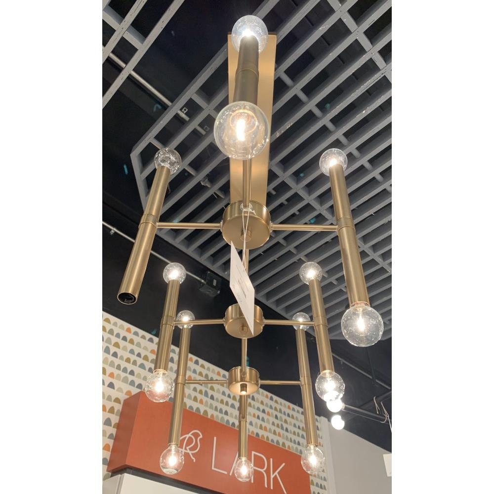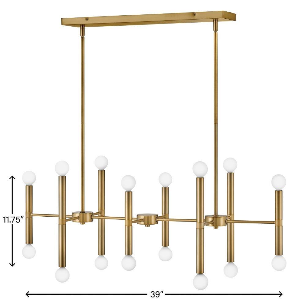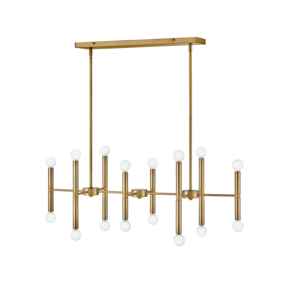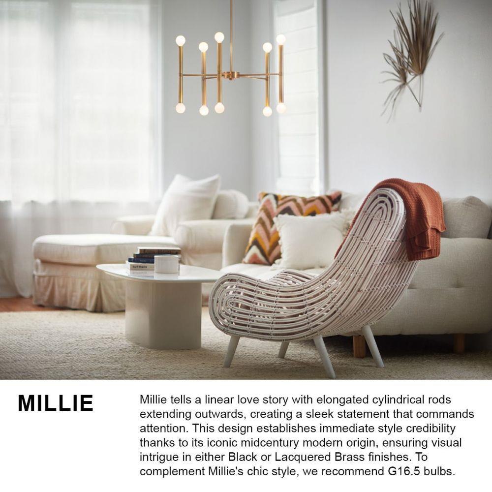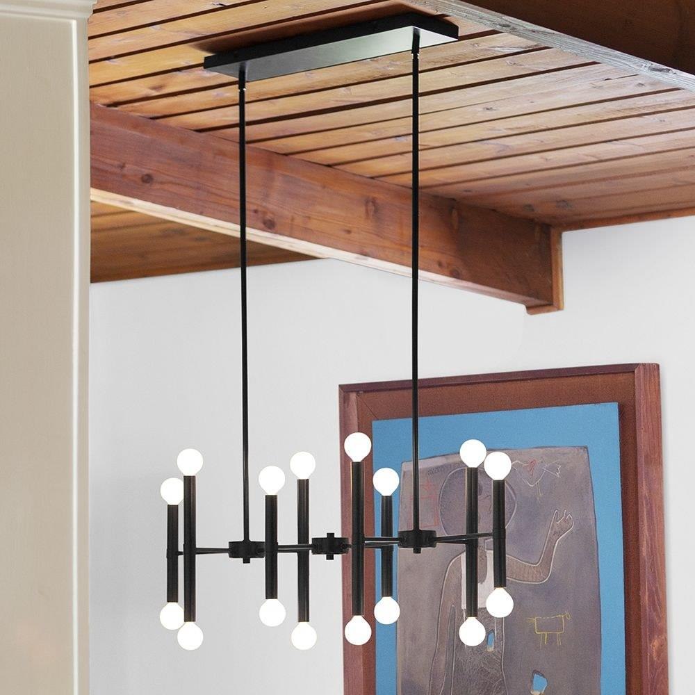 Millie tells a linear love story with elongated cylindrical rods that extend up and down, creating a sleek statement. This 16-light linear chandelier design establishes immediate style credibility in a striking Black finish thanks to its iconic mid-century modern origin.