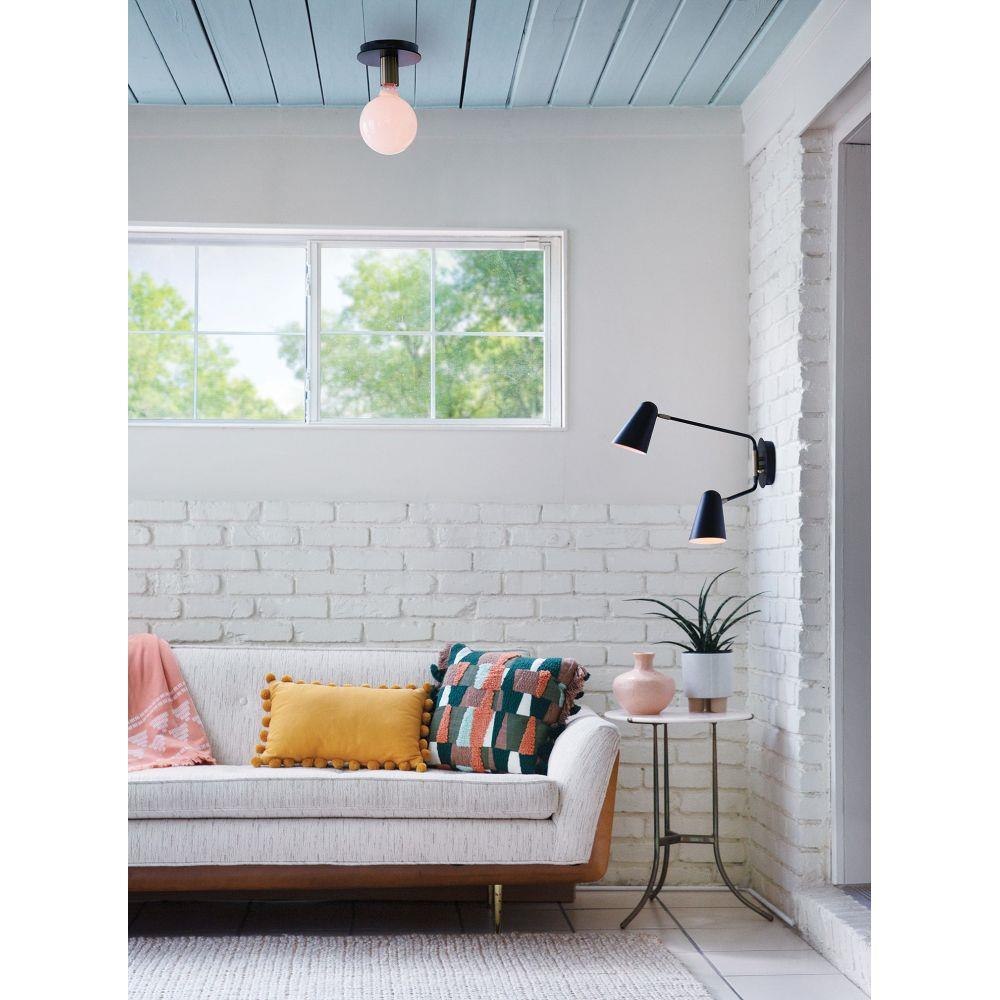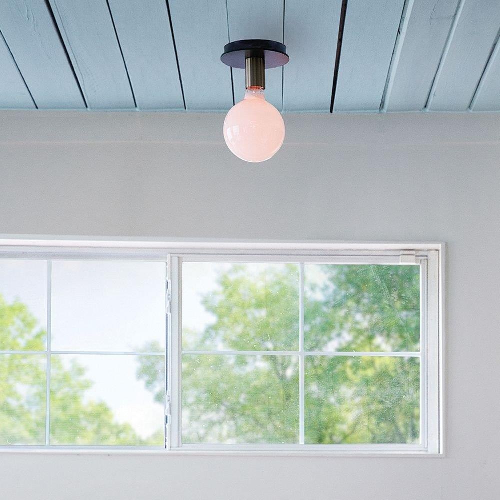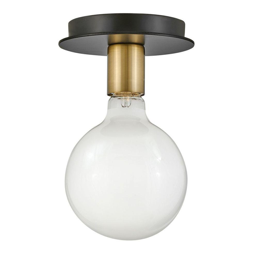 Mingling mid-century modern design elements into its posh form, Bobbie merges a playful vibe with stellar style. This eye-catching flush mount pairs two bold finishes, gleaming Lacquered Brass and an intense Black, to set up the true star of the show: a look-at-me bulb that makes lighting what it should be…fun. To complement Bobbie’s confident style, we recommend a G40 globe-styled bulb in a standard medium base.