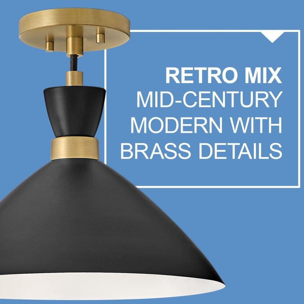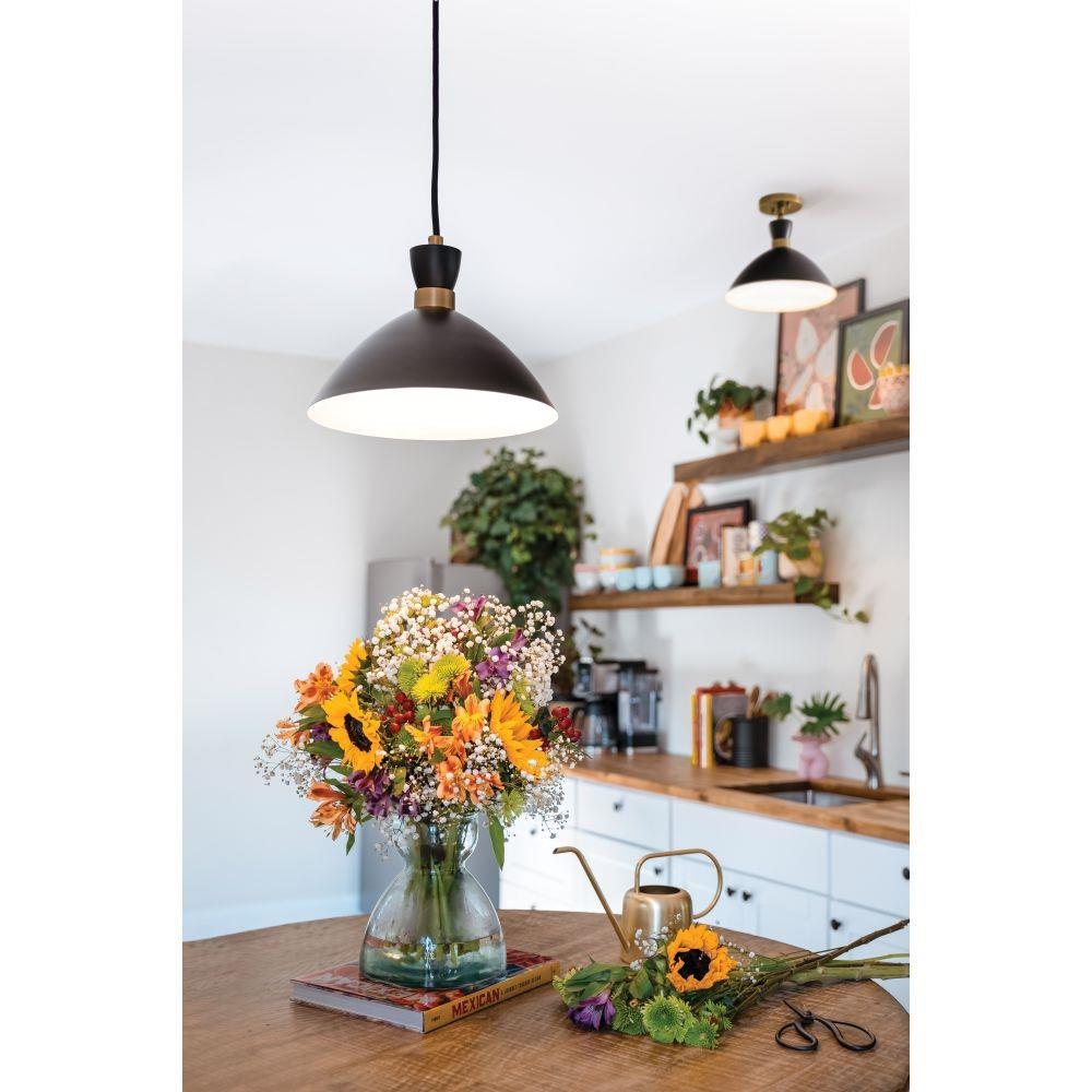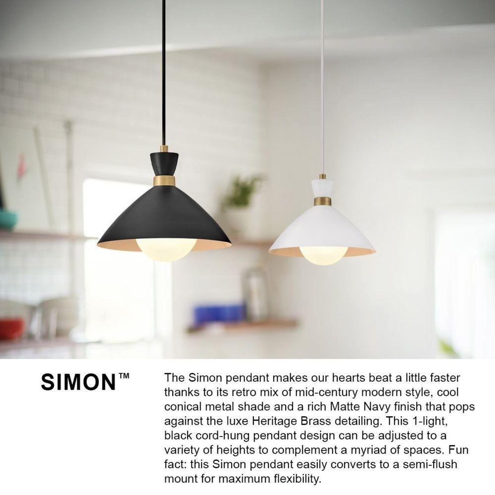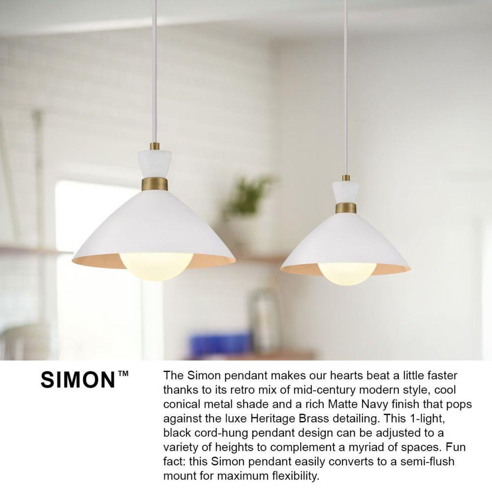 The Simon pendant makes our hearts beat a little faster thanks to its retro mix of mid-century modern style, cool conical metal shade and a matte Black finish that pops against the luxe Heritage Brass detailing. This 1-light, black cord-hung pendant design can be adjusted to a variety of heights to complement a myriad of spaces. Fun fact: this Simon pendant easily converts to a semi-flush mount for maximum flexibility.