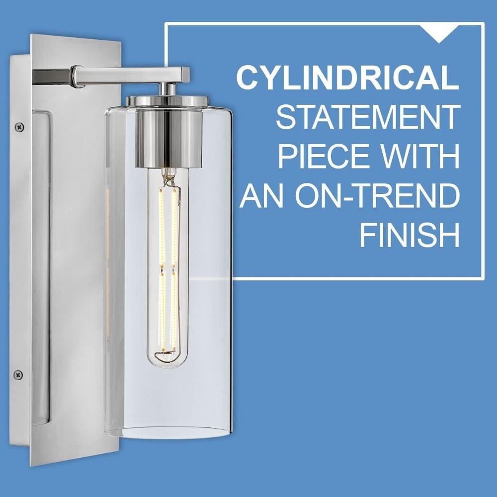 The Lane sconce is a cylindrical statement piece. The oversized clear glass shade delivers a powerful punch while keeping its cool with sleek, streamlined poise. The elongated back plate paired with the three on-trend finish options give off an industrial-chic feel that shines in any space.
