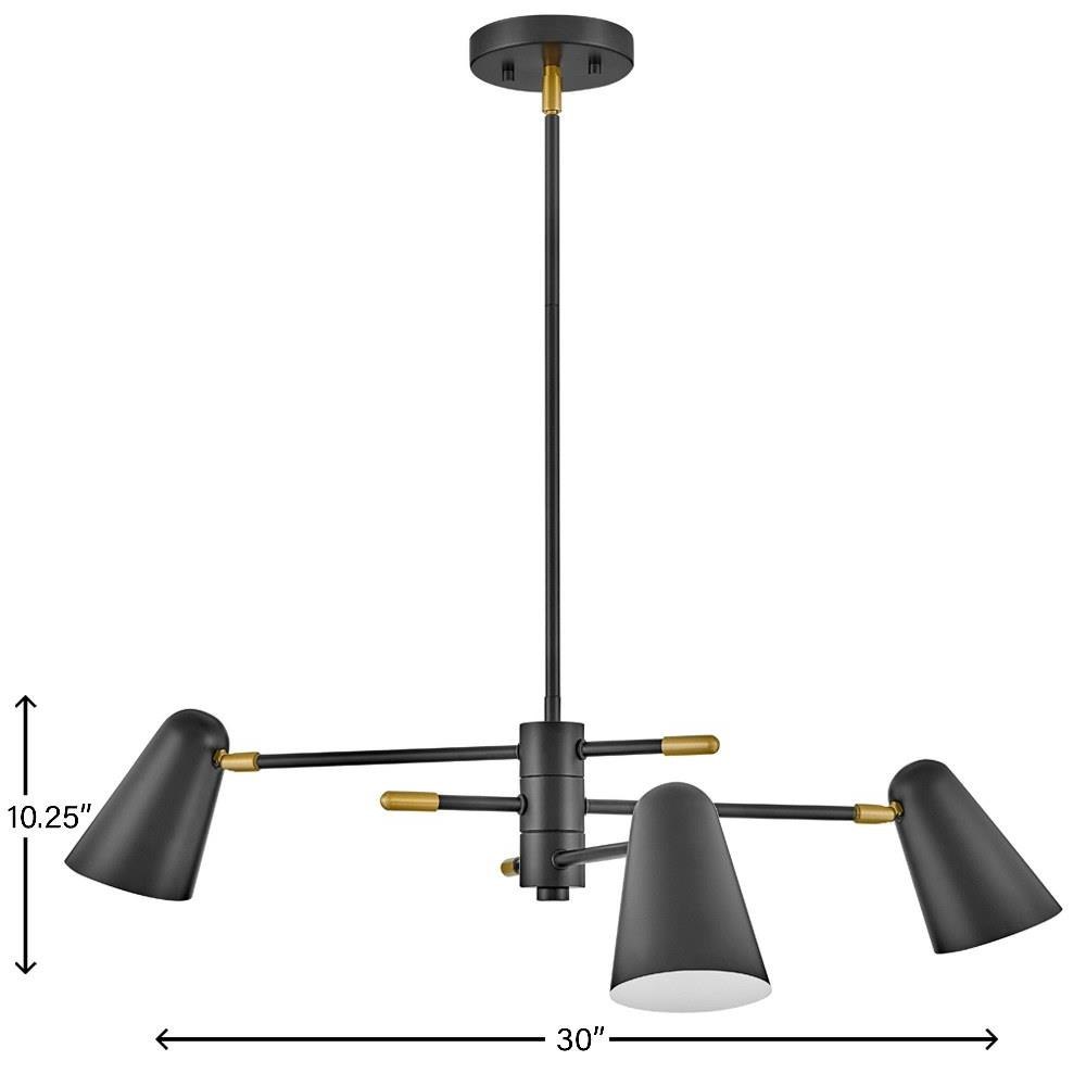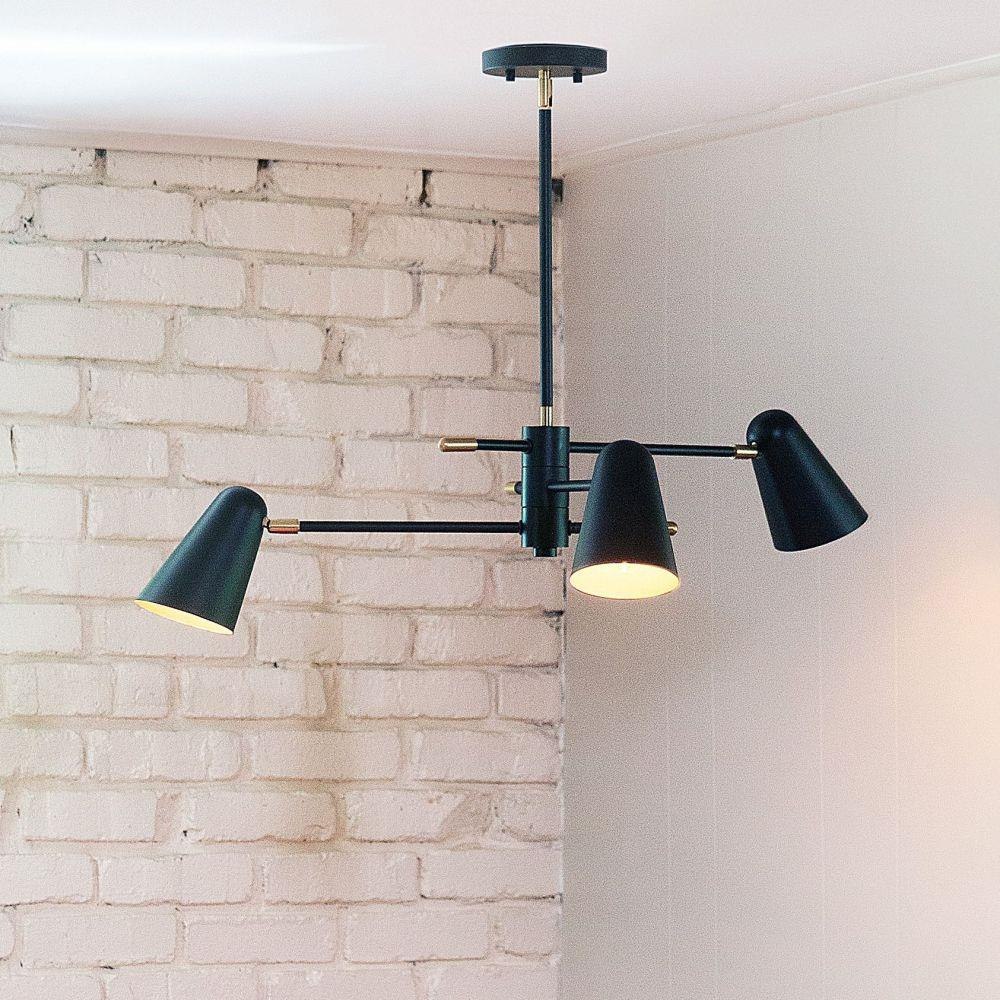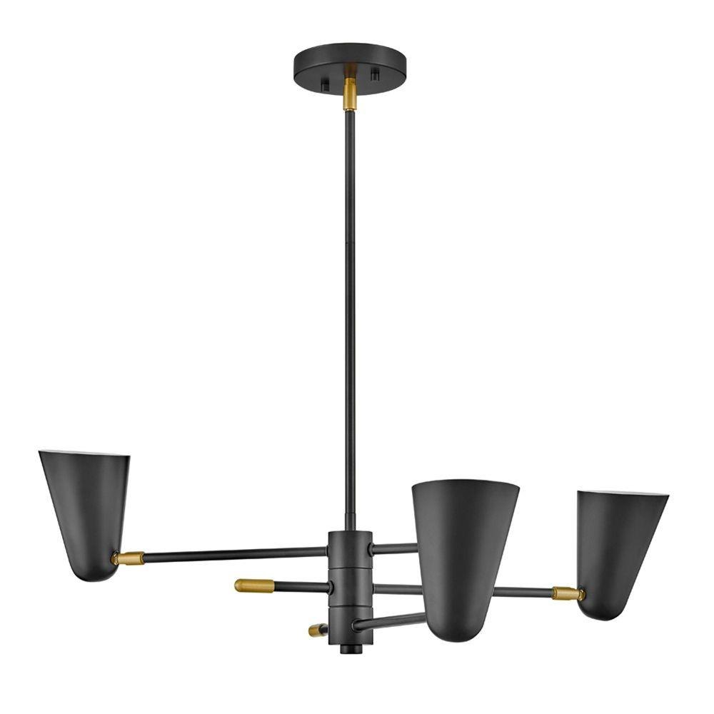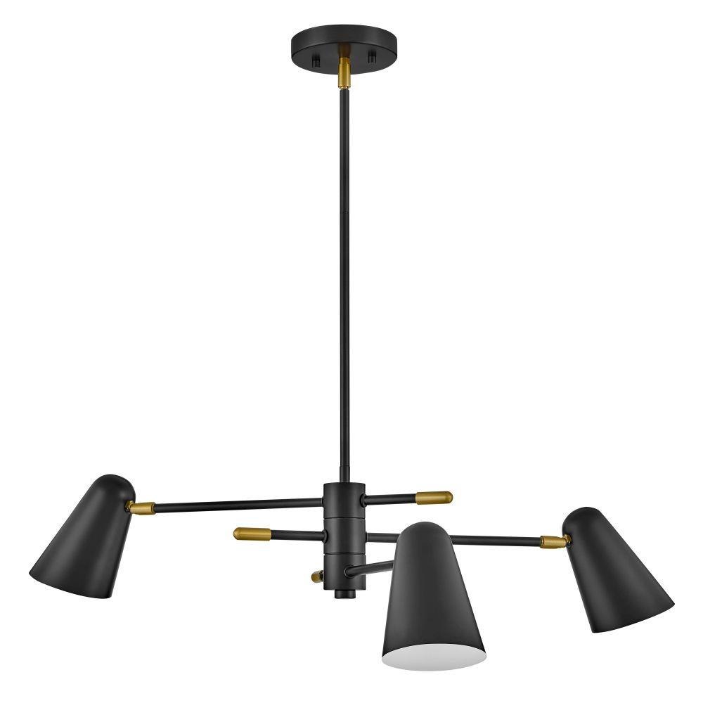 Let creativity soar with Birdie’s versatile form. The 3-light convertible single-tier chandelier has arms that articulate and shades that pivot to deliver the perfect directional light – AKA flexibility at your fingertips. A Black and Lacquered Brass duo is the perfect finishing touch to this mobile, mid-century modern design.Suitable for use in dry (indoor) locations as defined by NEC and CEC. Meets United States UL Underwriters Laboratories & CSA Canadian Standards Association Product Safety Standards | This fixture includes multiple down stems in various lengths to customize the installation height of the fixture, including one 6" stem and two 12" stems. | Please refer to Lark's Warranty for complete product warranty details, some warranty limitations may apply. | Effortlessly cool, this mid-century modern design inspires any space with its chic vintage vibe | This stem hung fixture may be hung on a sloped ceiling | The articulating arm can swing left or right and the shade can be adjusted up or down. | Features On/Off switch | Striking black finish enhances design | Convertible fixture mounts directly to canopy or with a fixture-specific stem or chain that is 6” or less