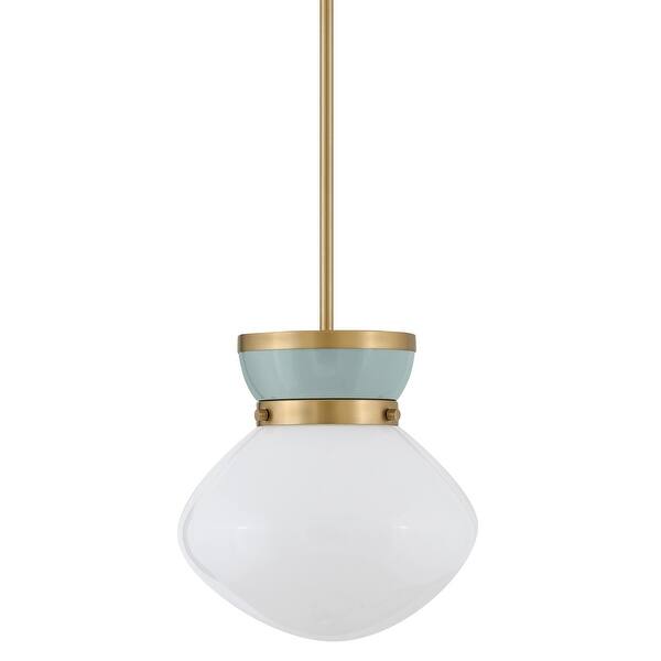 Lark 83607 Lucy 10" Wide Mini Pendant with Cased Opal Glass - Lacquered Brass / Seafoam