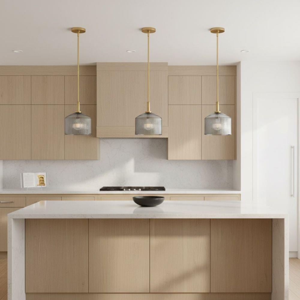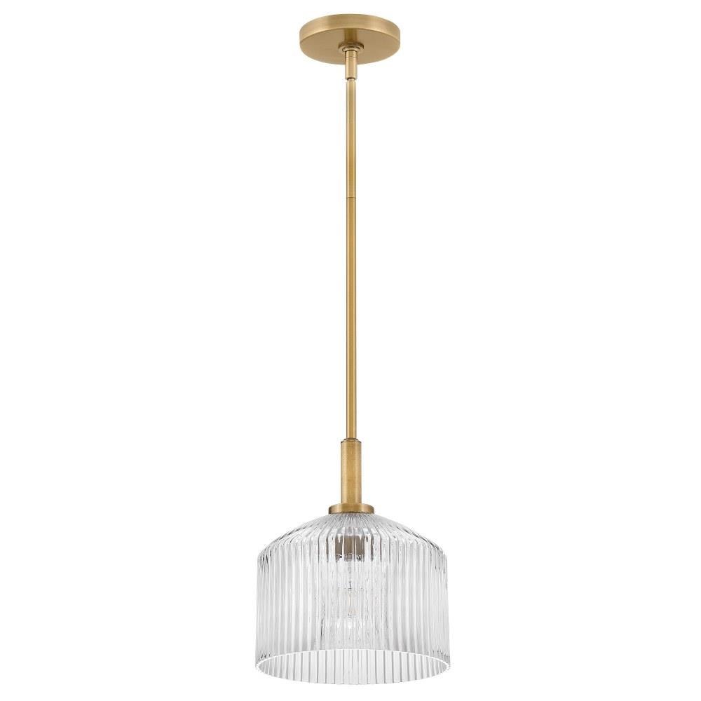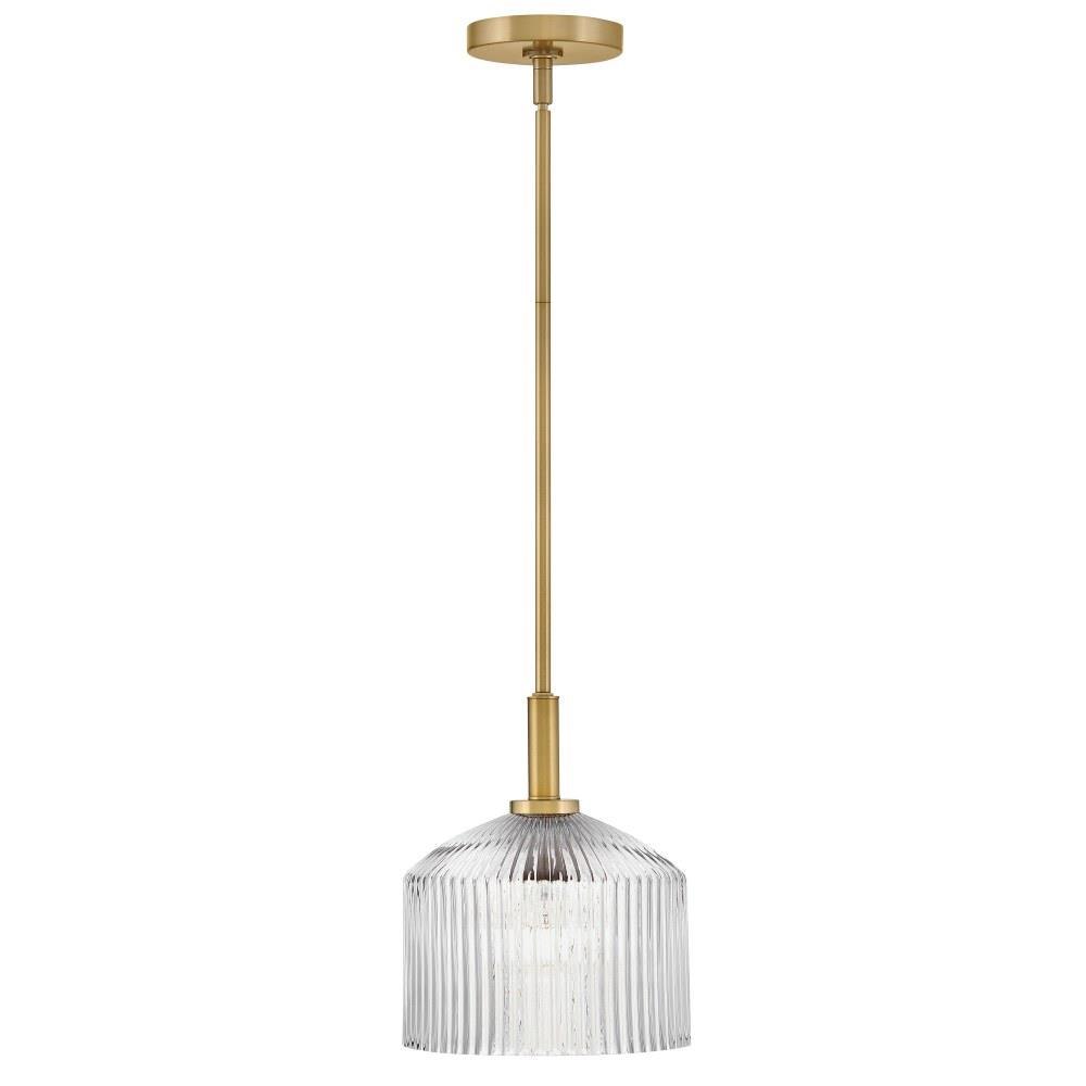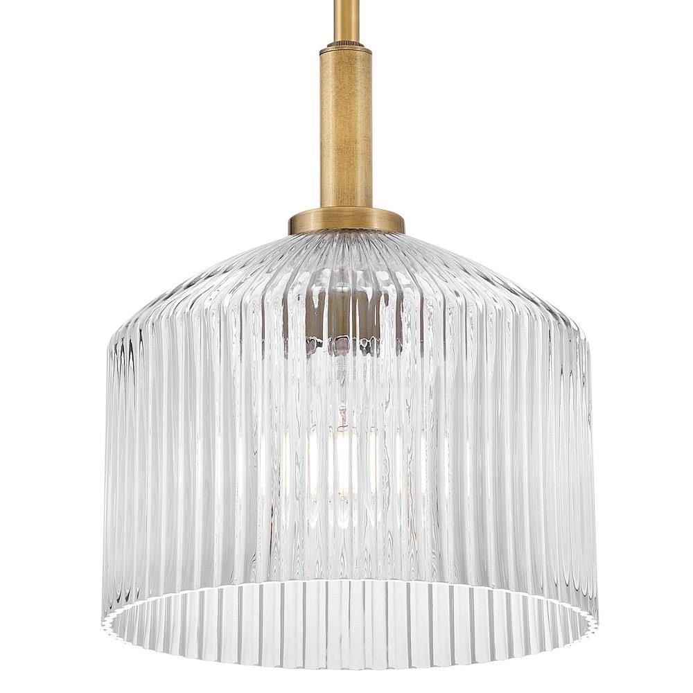A chic throwback to vintage glassware and retro colors, Lisette’s ribbed shade makes a cool statement in Rose, Smoked, or Clear glass. The subtle texture casts enchanting refractions throughout your space while a classic brass finish blends perfectly into any décor style.