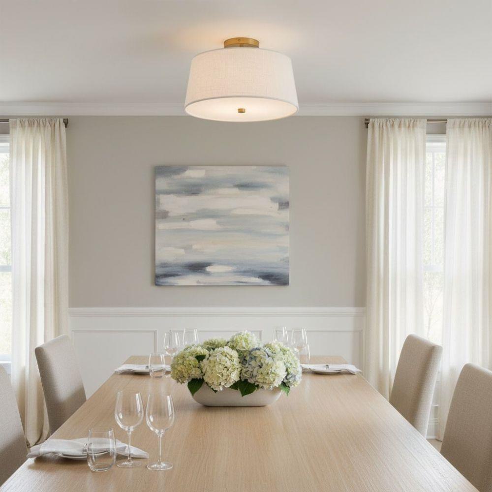 Classic elements get a transitional update with Beale, a dimensional beauty with neatly angular lines. The white linen shade paired with an acrylic lens radiates ambient light in a pendant or semi-flush mount design, aiding Beale in bringing simple, functional style anytime, anywhere.